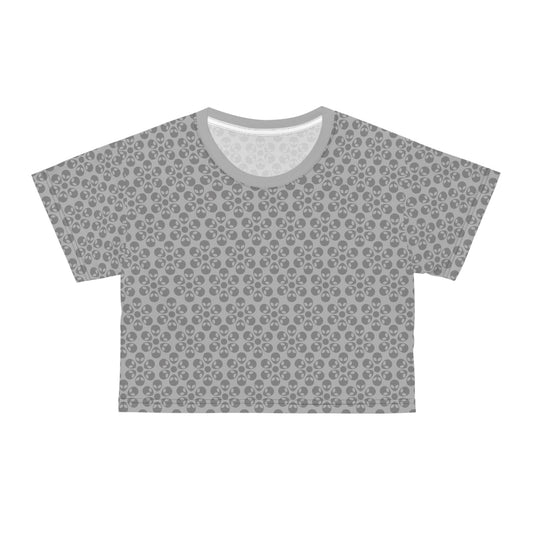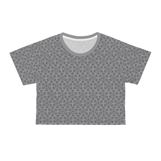 Feminine Floral Crop Tee Trendy Summer Top Aesthetic Graphic Shirt Casual Outfit Unique Gift for Her Vintage Style Tee Alien Flowers Grey