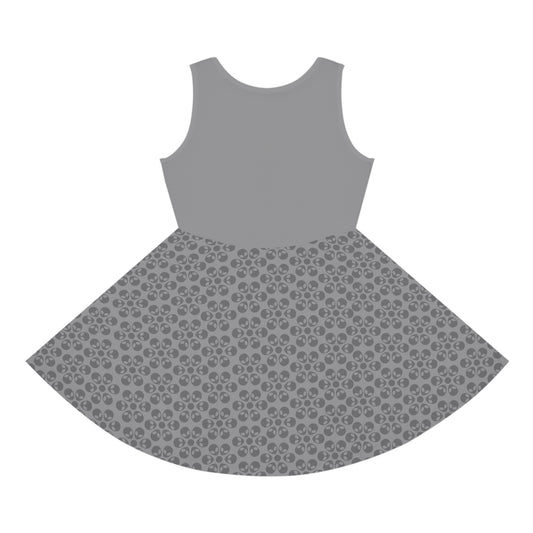 Girls Floral Sleeveless Sundress Cute Summer Dress Kids Fashion Birthday Outfit Playful Floral Pattern Spring Dress Alien Flowers Grey