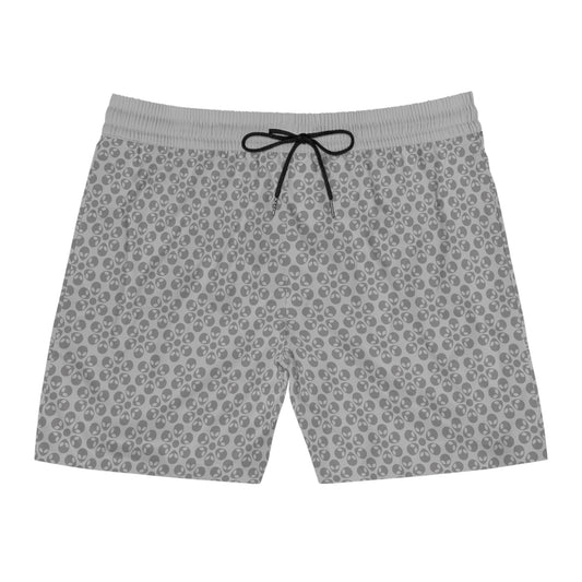 Stylish Mens MidLength Swim Shorts Beachwear Vacation Essentials Poolside Comfort Summer Outfit Trendy Swimwear Alien Flowers Light Grey