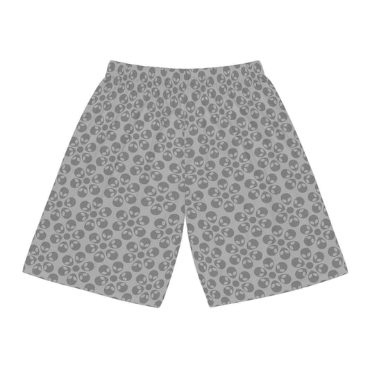 Trendy Skull Pattern Basketball Shorts Summer Activewear Sports Apparel Casual Wear Beach Shorts Gift for Basketball Lovers Alien Flowers Light Grey