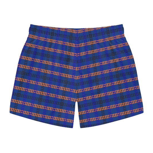 Vibrant Checkered Swim Trunks Beachwear for Summer Fun Vacation Essential Pool Party MustHave Mens Swim Shorts Train Tracks Dark Blue