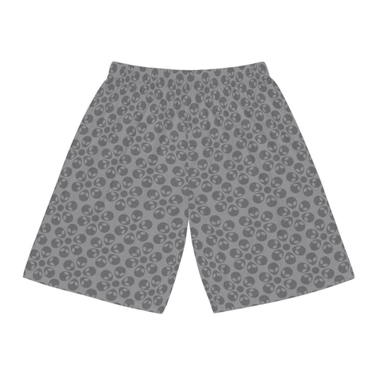 Trendy Skull Pattern Basketball Shorts Summer Activewear Sports Apparel Casual Wear Beach Shorts Gift for Basketball Lovers Alien Flowers Grey