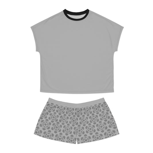 Stylish Womens Pajama Set Cozy Sleepwear AOP Floral Print Perfect for Lounging Gift for Her Summer Nights Relaxation Alien Flowers Light Grey