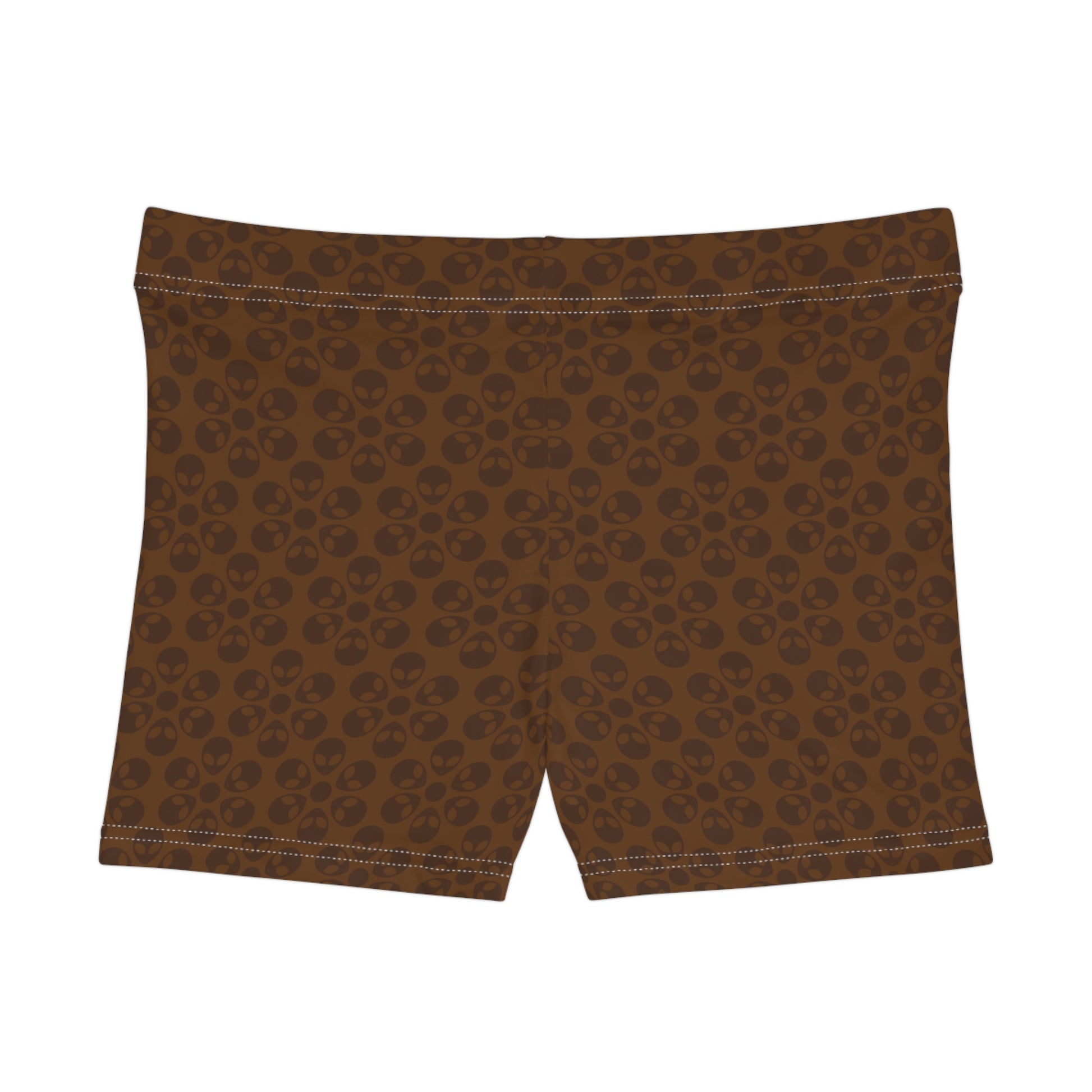Alien Pattern Womens Shorts for Casual Summer Days Beach Wear Festival Outfit Relaxed Style Alien Flowers Brown