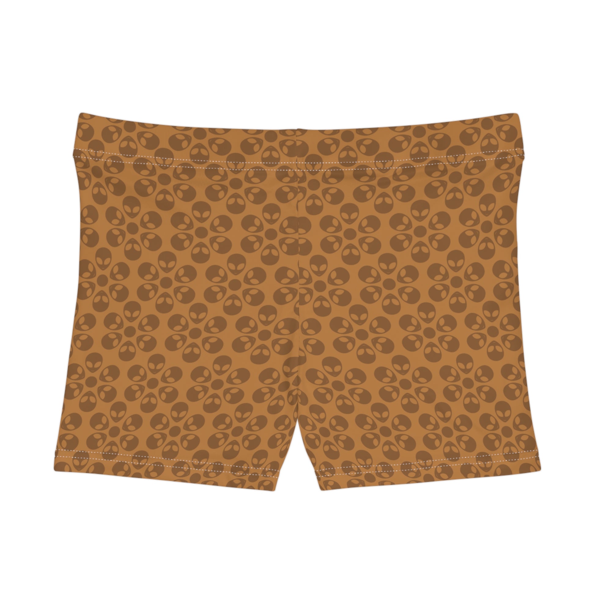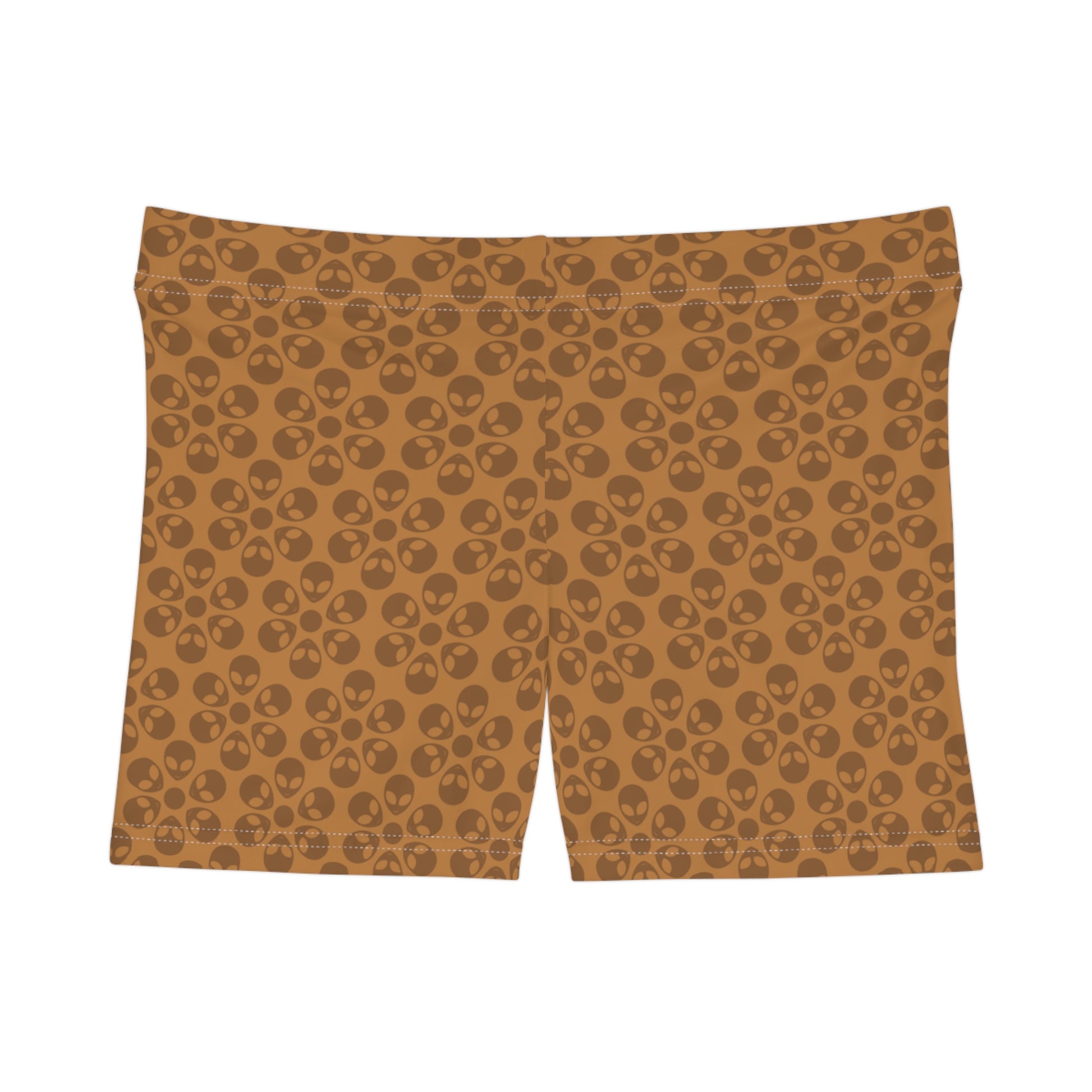 Alien Pattern Womens Shorts for Casual Summer Days Beach Wear Festival Outfit Relaxed Style Alien Flowers Light Brown