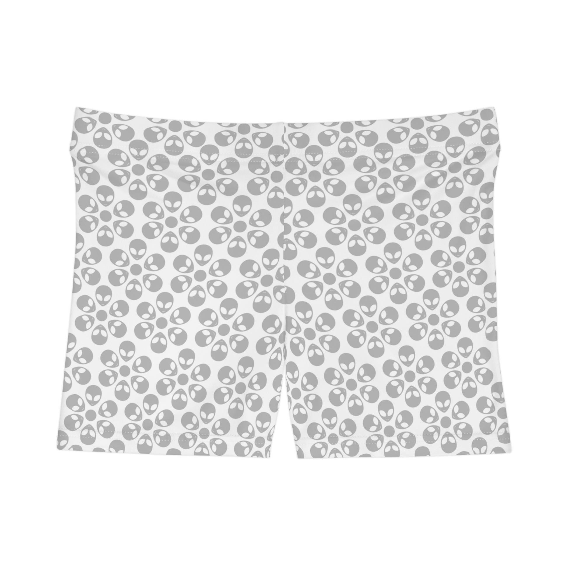 Alien Pattern Womens Shorts for Casual Summer Days Beach Wear Festival Outfit Relaxed Style Alien Flowers Dark Red