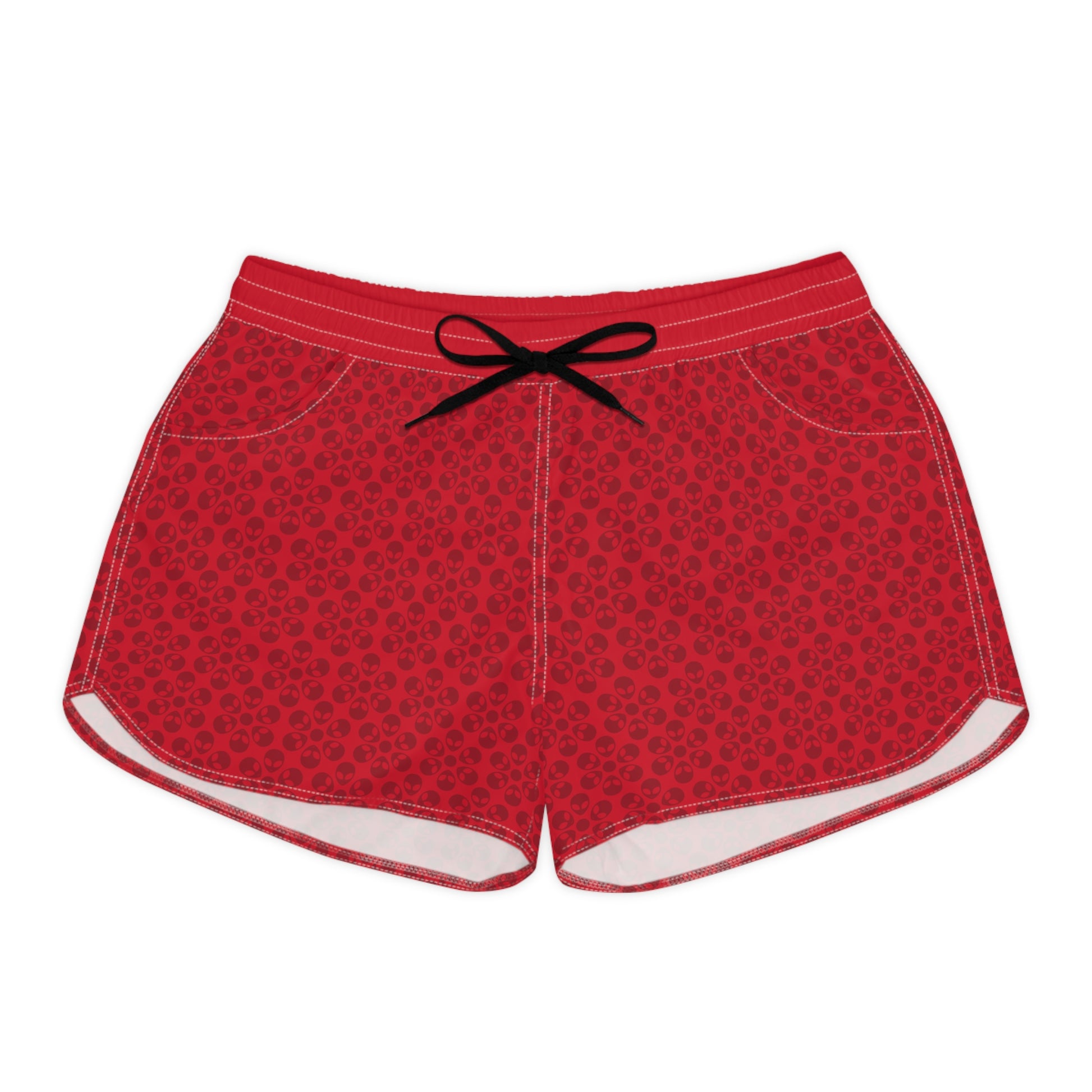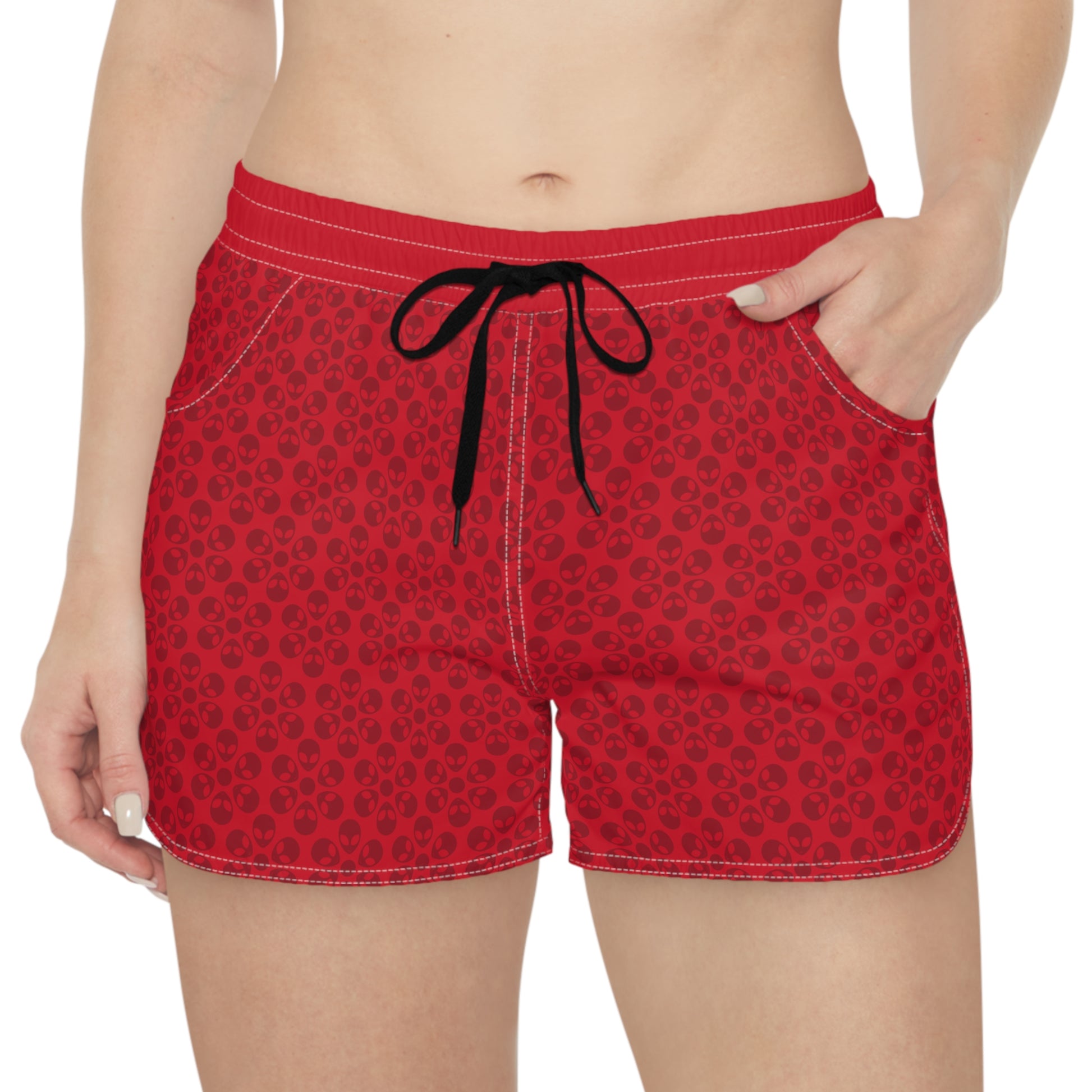 Casual Alien Print Shorts for Women Fashionable Summer Loungewear Perfect for Lounging Yoga Beach Summer Vacations Gifts Alien Flowers Dark Red