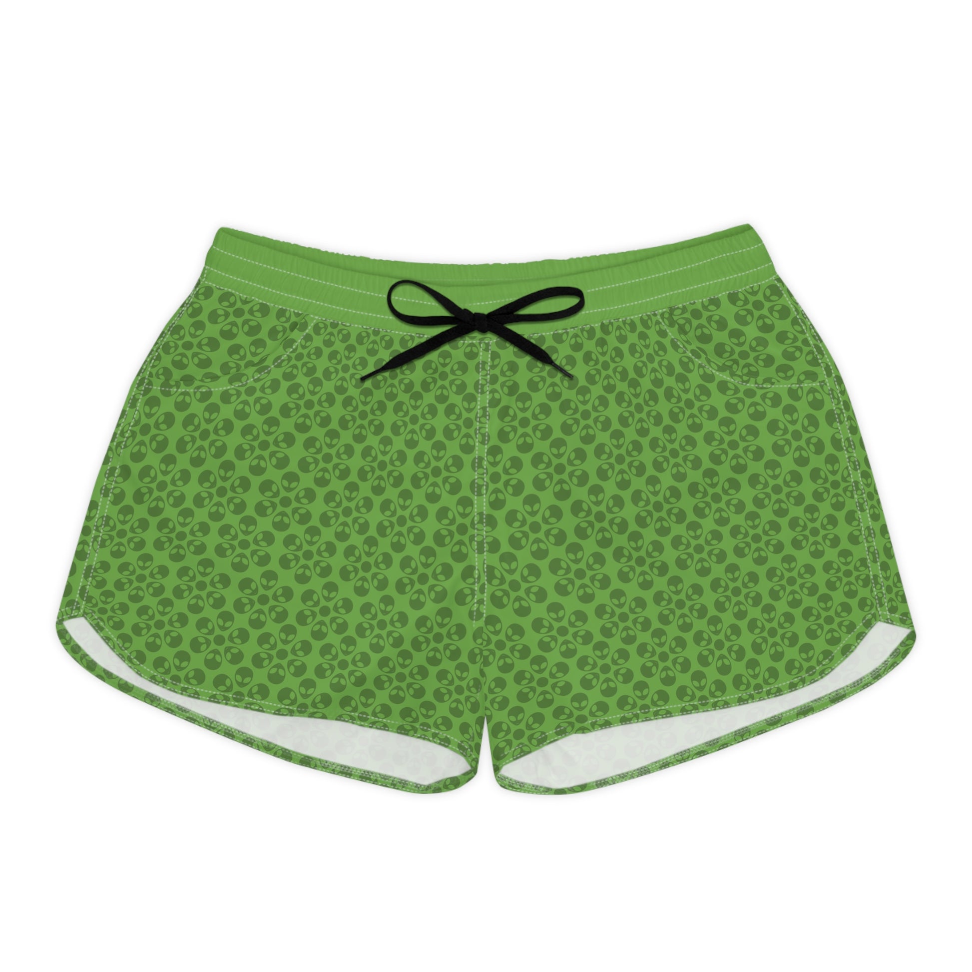 Casual Alien Print Shorts for Women Fashionable Summer Loungewear Perfect for Lounging Yoga Beach Summer Vacations Gifts Alien Flowers Green