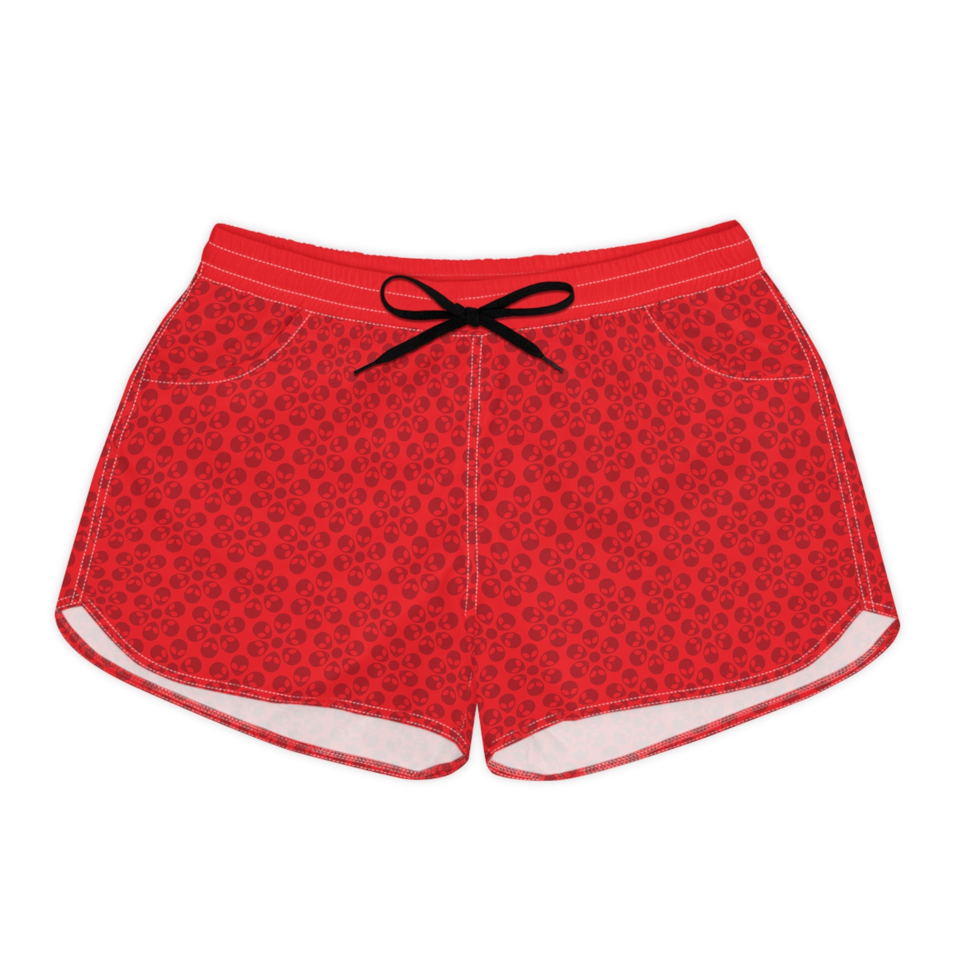 Casual Alien Print Shorts for Women Fashionable Summer Loungewear Perfect for Lounging Yoga Beach Summer Vacations Gifts Alien Flowers Red