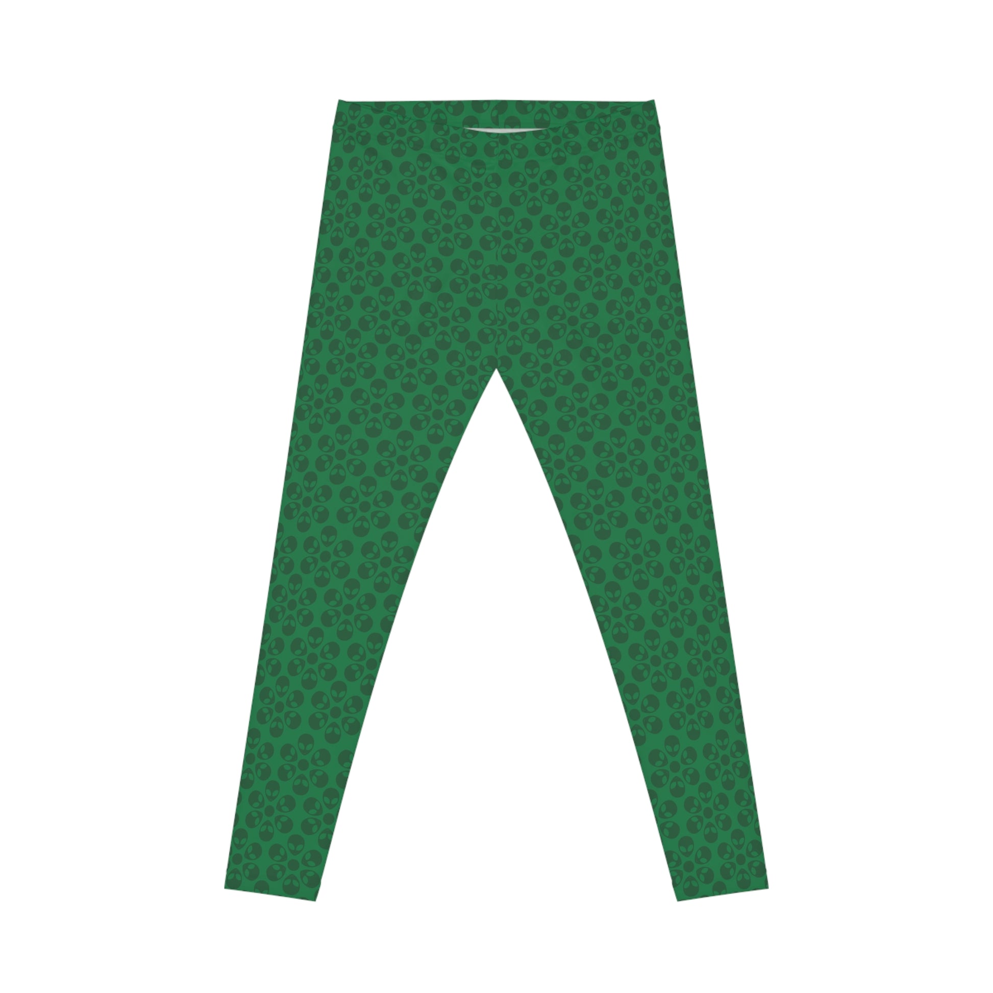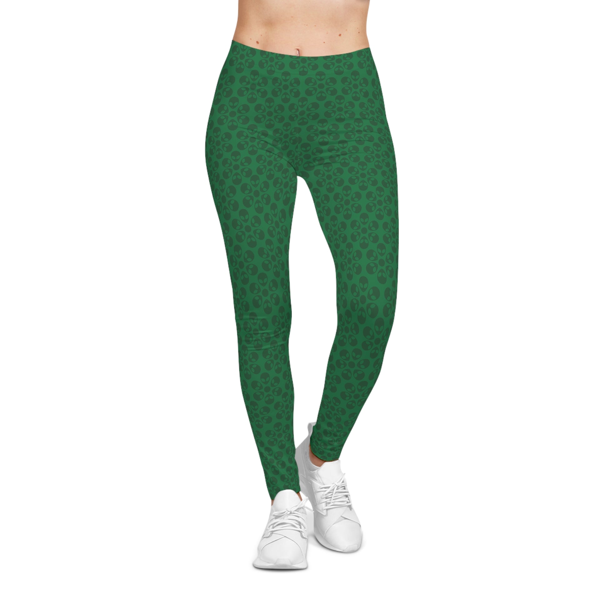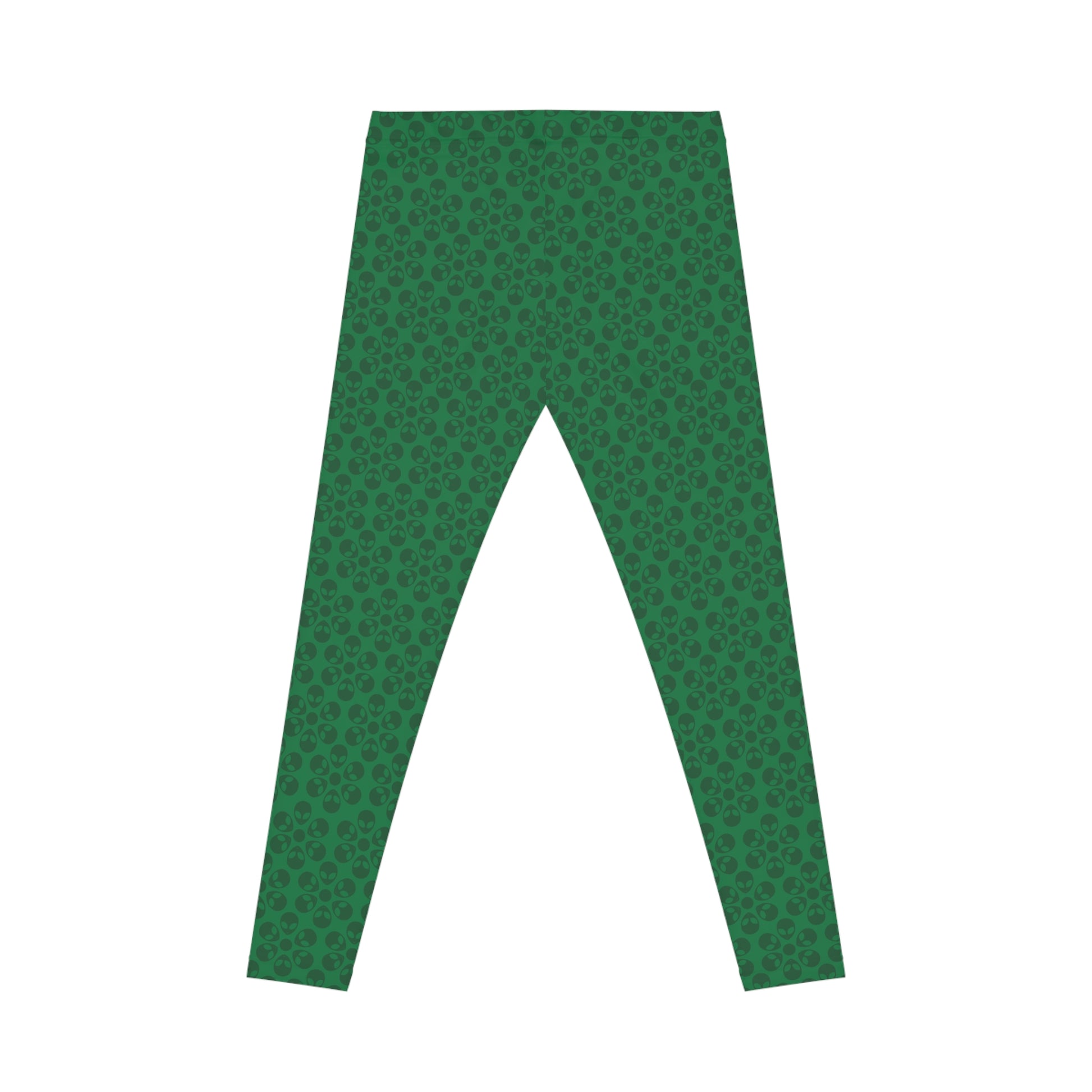 Chic Floral Leggings Trendy Loungewear for Women Fitness Pants Yoga Wear Stylish Outfits Everyday Comfort Alien Flowers Dark Green