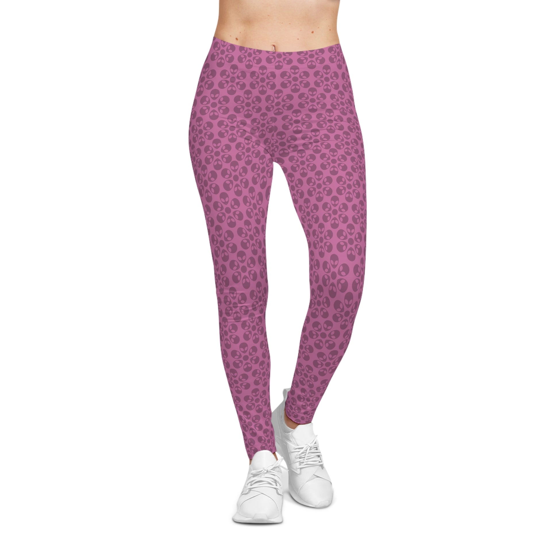 Chic Floral Leggings Trendy Loungewear for Women Fitness Pants Yoga Wear Stylish Outfits Everyday Comfort Alien Flowers Light Pink