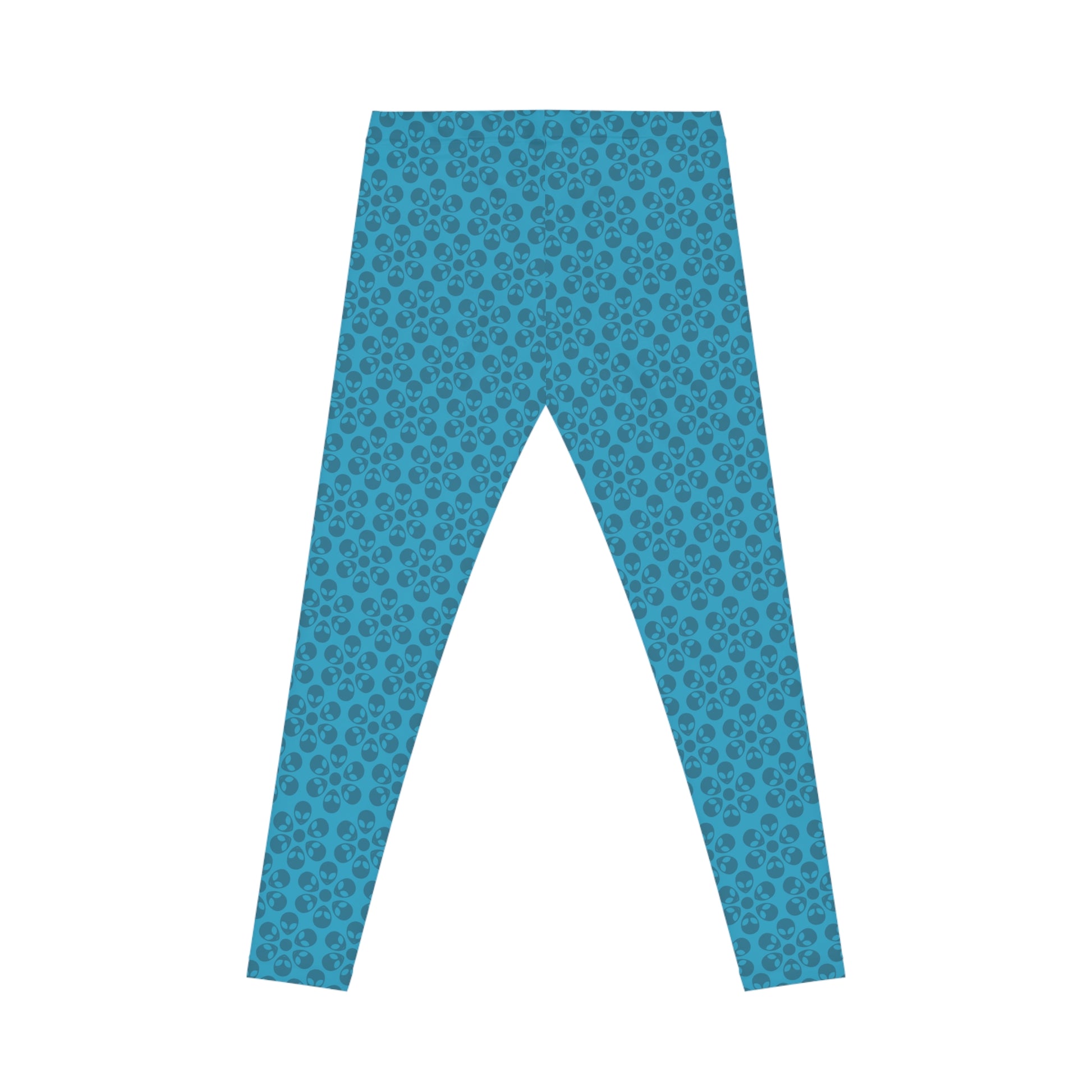 Chic Floral Leggings Trendy Loungewear for Women Fitness Pants Yoga Wear Stylish Outfits Everyday Comfort Alien Flowers Turquoise