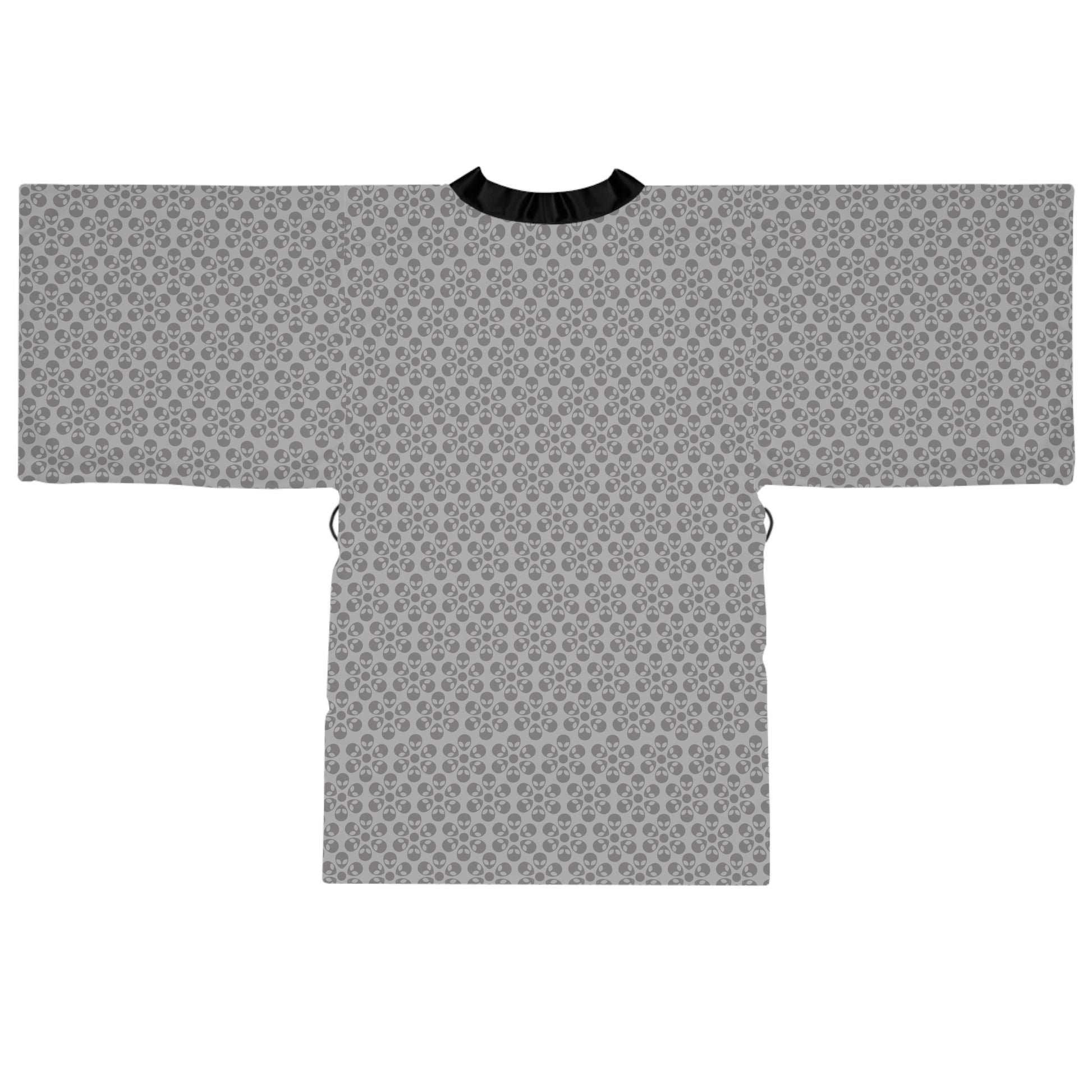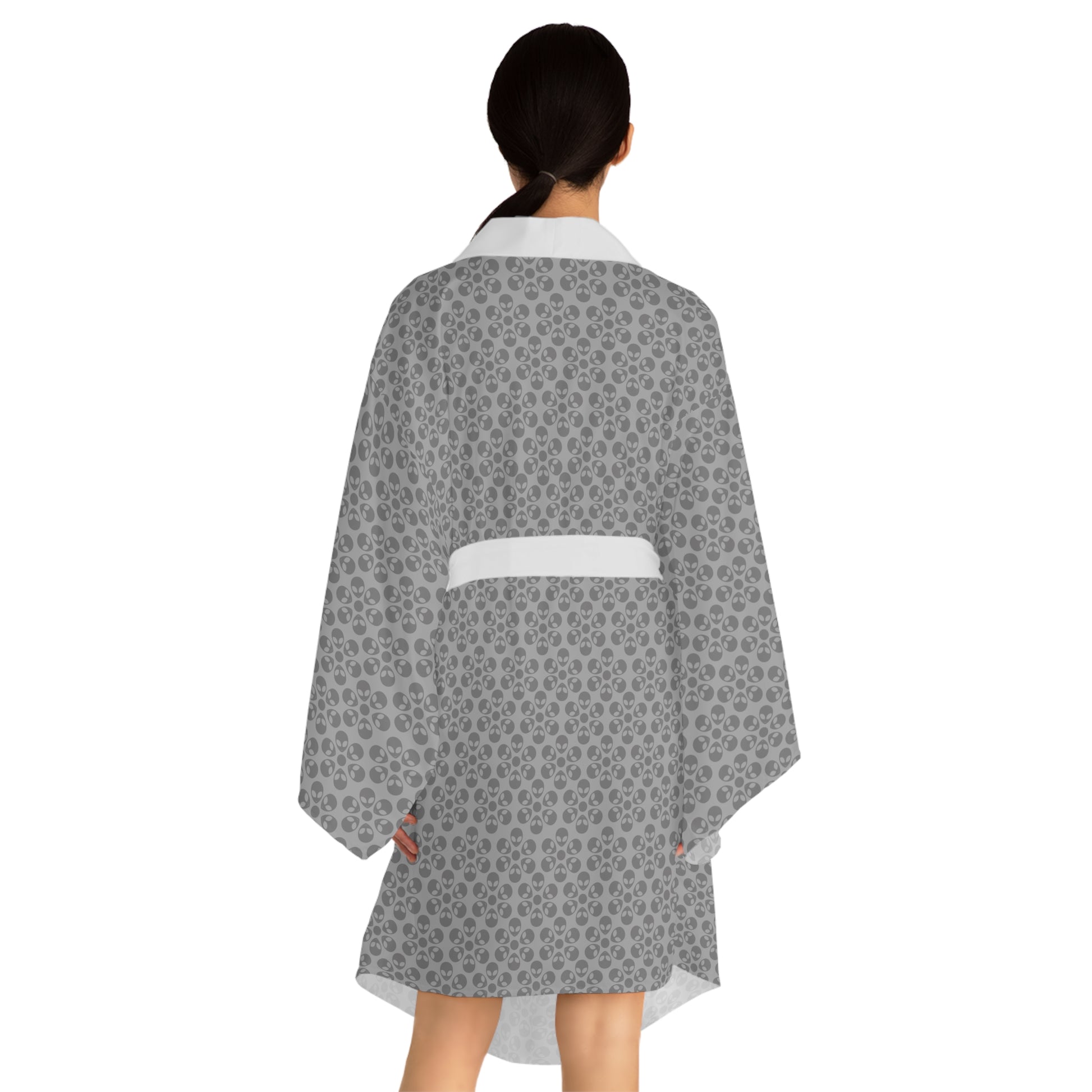 Chic Floral Long Sleeve Kimono Robe Bohemian Loungewear Relaxation Gift Spa Day Essential Cozy Home Attire Trendy Style Alien Flowers Light Grey