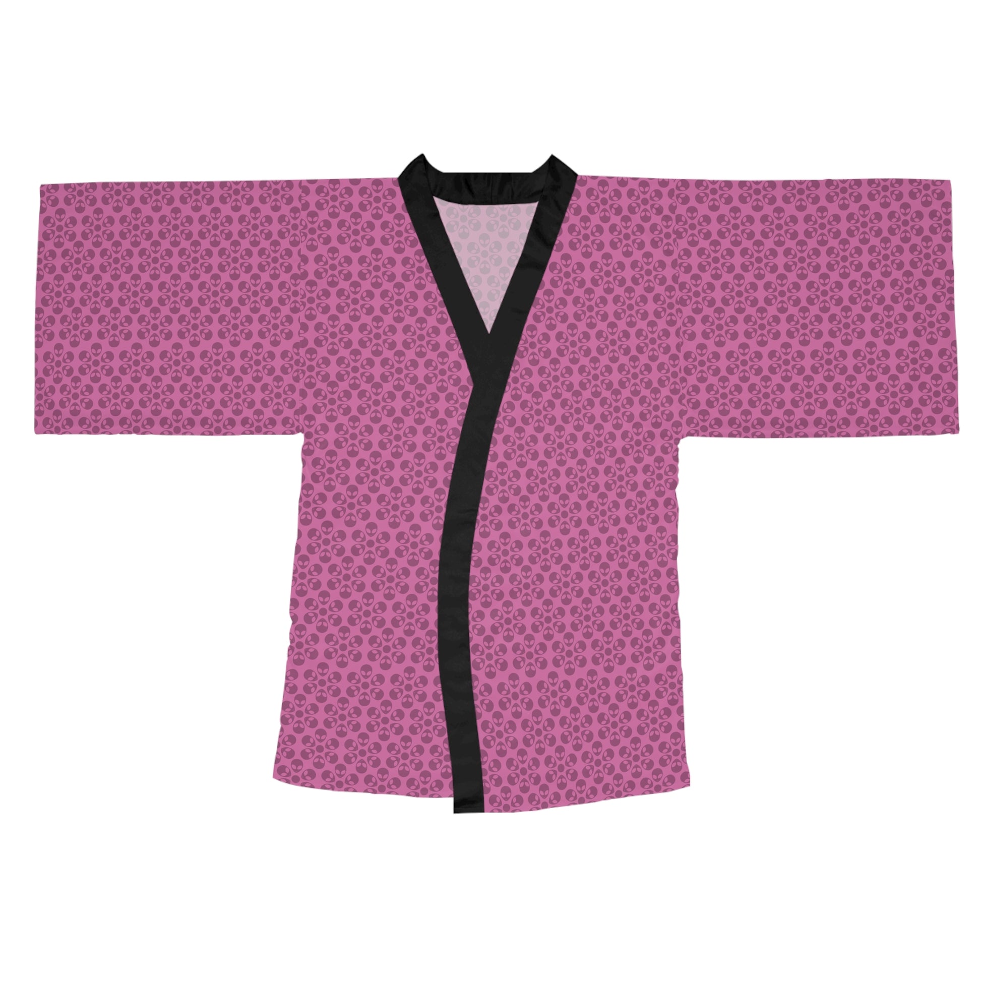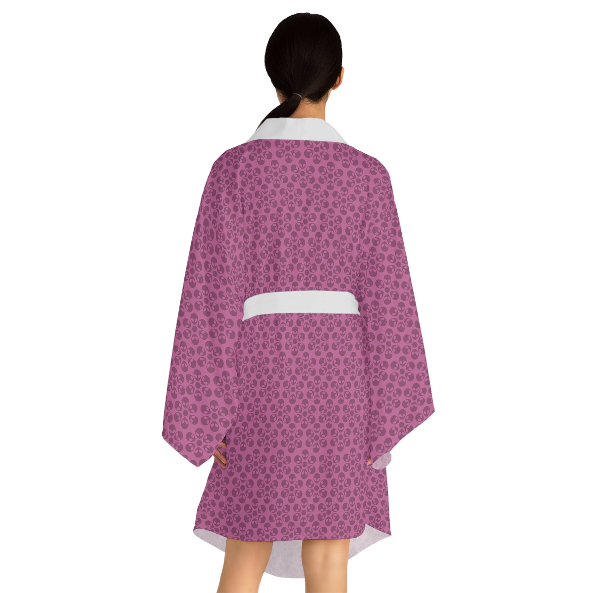 Chic Floral Long Sleeve Kimono Robe Bohemian Loungewear Relaxation Gift Spa Day Essential Cozy Home Attire Trendy Style Alien Flowers Light Pink