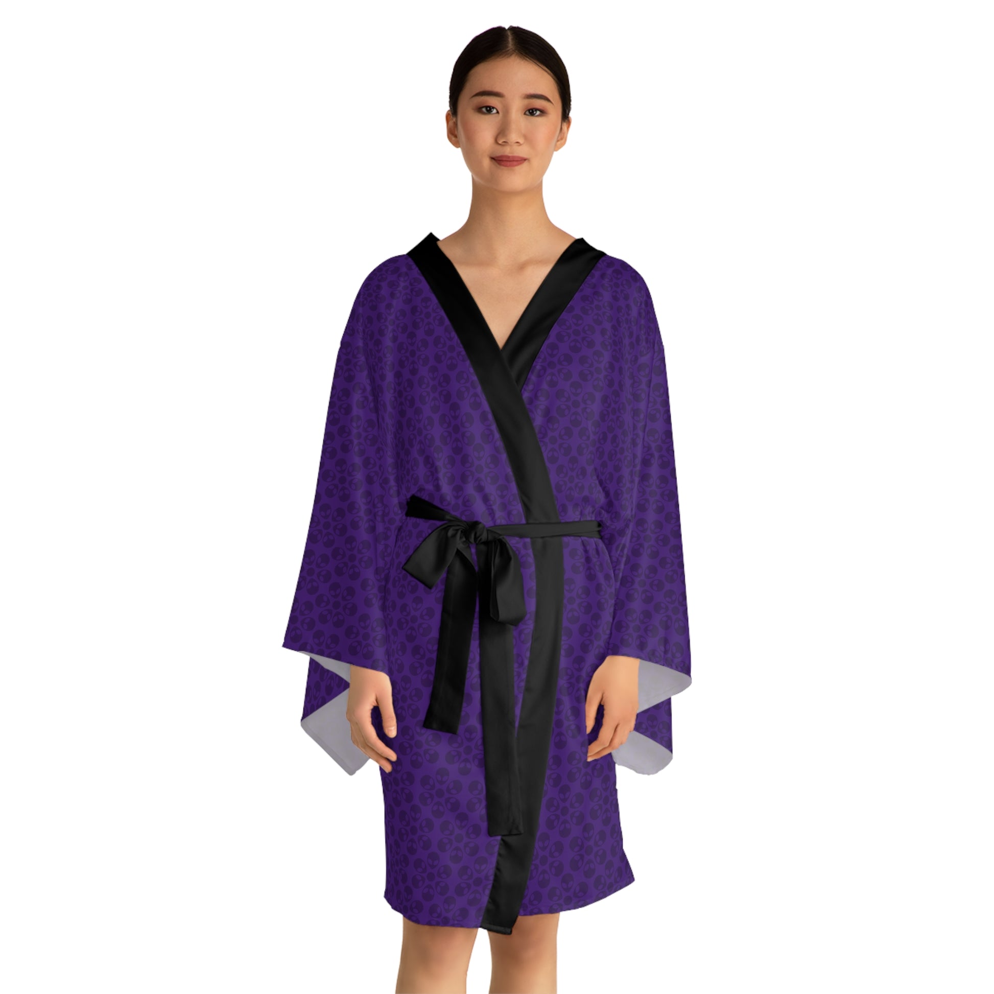 Transform your lounging experience with this elegant Long Sleeve Kimono Robe. Perfectly blended with comfort and style, this robe brings a chic vibe to any casual or festive gathering. The flowing bell sleeves and mid-length cut offer a figure-flattering silhouette, making it suitable for all body types. It's versatile enough to be worn as loungewear at home or as a stylish dress for parties. This kimono robe resonates with anyone who values comfort without sacrificing style. Ideal for cozy nights in, brunches, or even as a unique gift for birthdays, holidays, and special occasions like anniversaries. Elevate your wardrobe and make every moment feel special with this multifunctional piece.