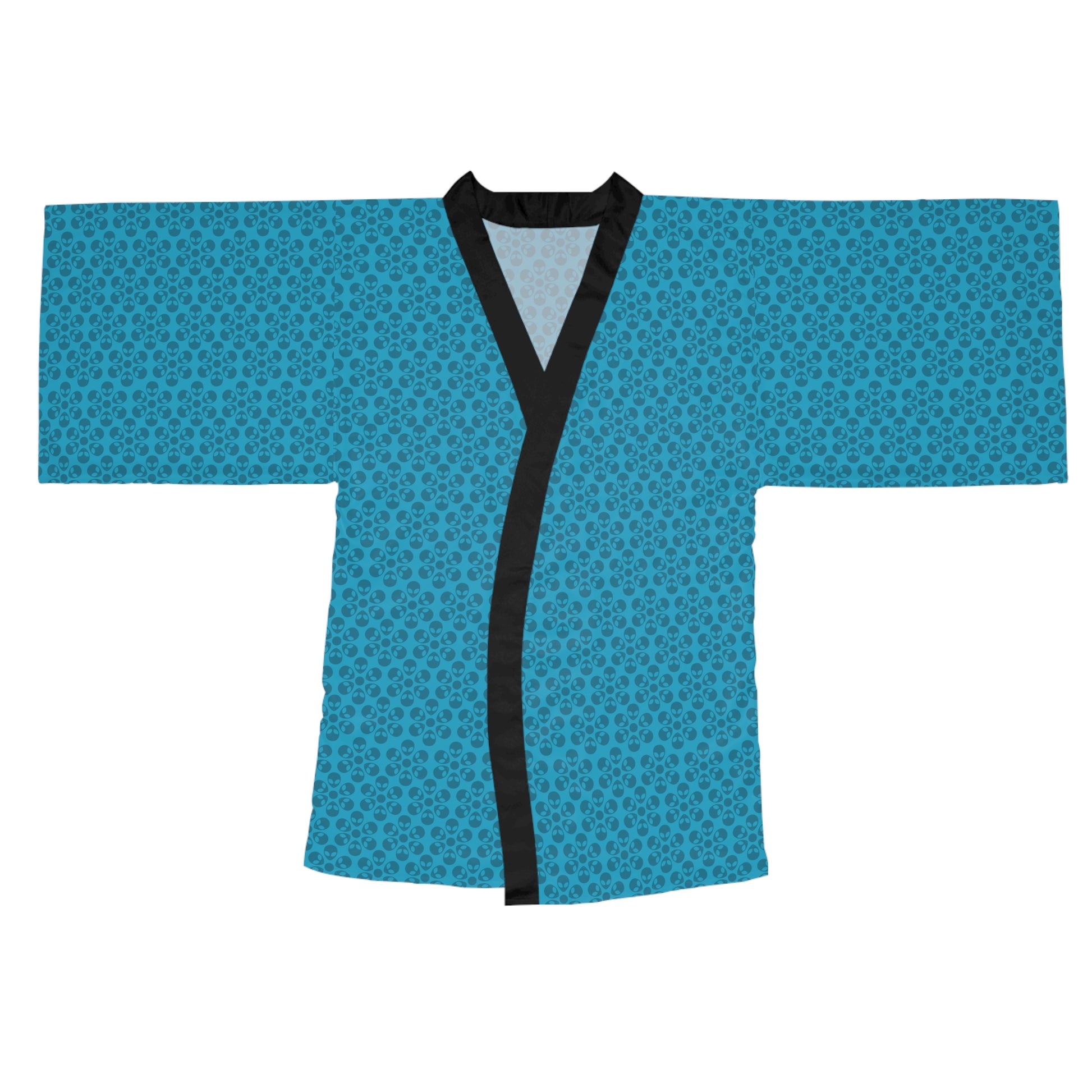 Chic Floral Long Sleeve Kimono Robe Bohemian Loungewear Relaxation Gift Spa Day Essential Cozy Home Attire Trendy Style Alien Flowers Turquoise