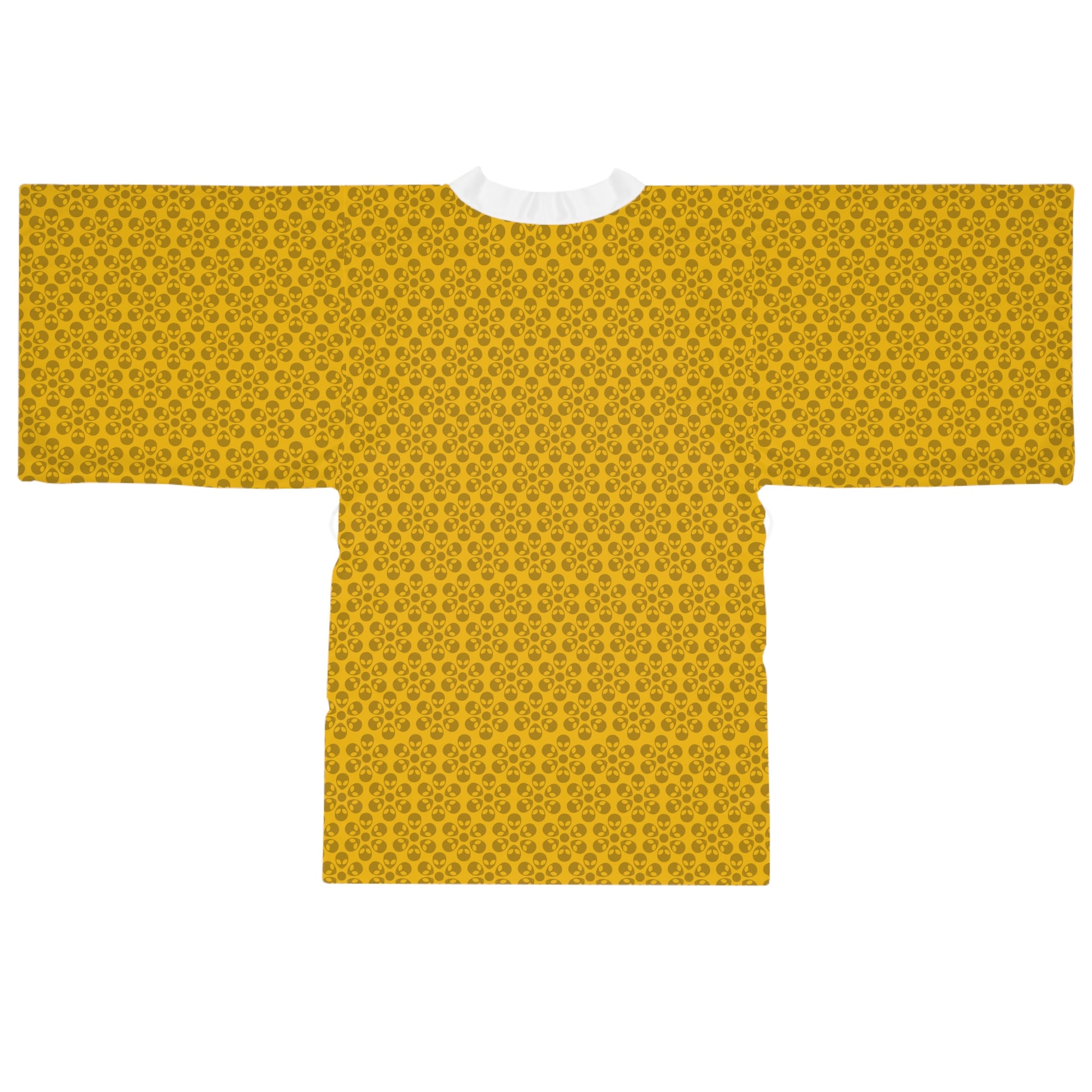 Chic Floral Long Sleeve Kimono Robe Bohemian Loungewear Relaxation Gift Spa Day Essential Cozy Home Attire Trendy Style Alien Flowers Yellow