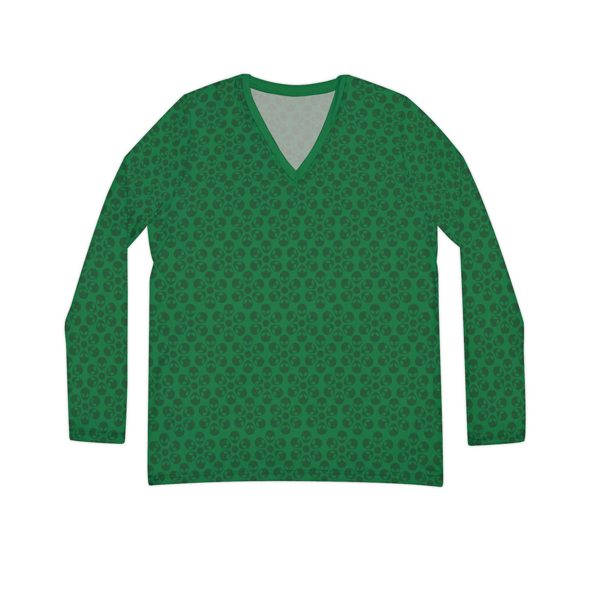 Chic Floral VNeck Shirt Stylish Womens Top Perfect for Everyday Wear Casual Gatherings Spring Outings Mother’s Day Gift Alien Flowers Dark Green