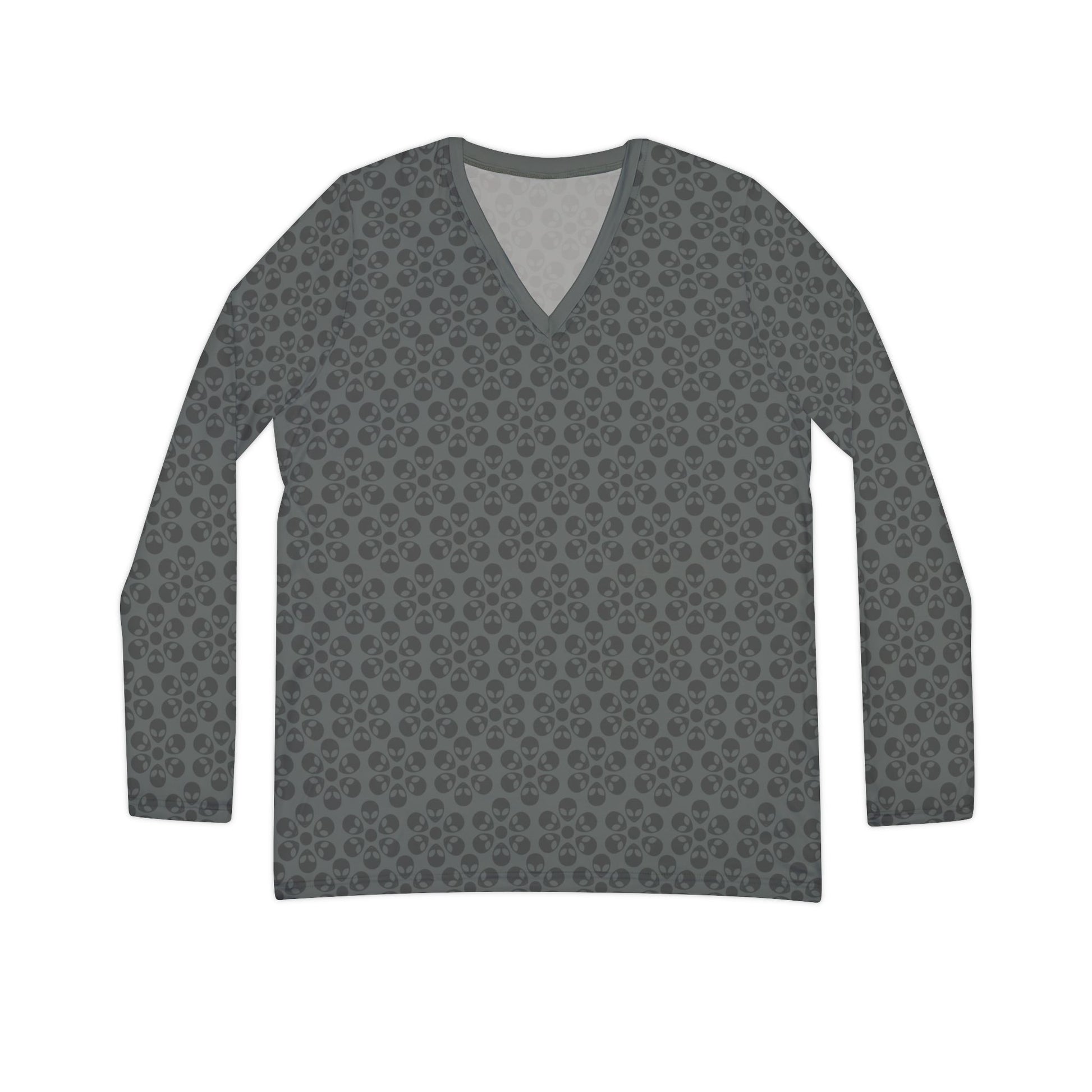 Chic Floral VNeck Shirt Stylish Womens Top Perfect for Everyday Wear Casual Gatherings Spring Outings Mother’s Day Gift Alien Flowers Dark Grey