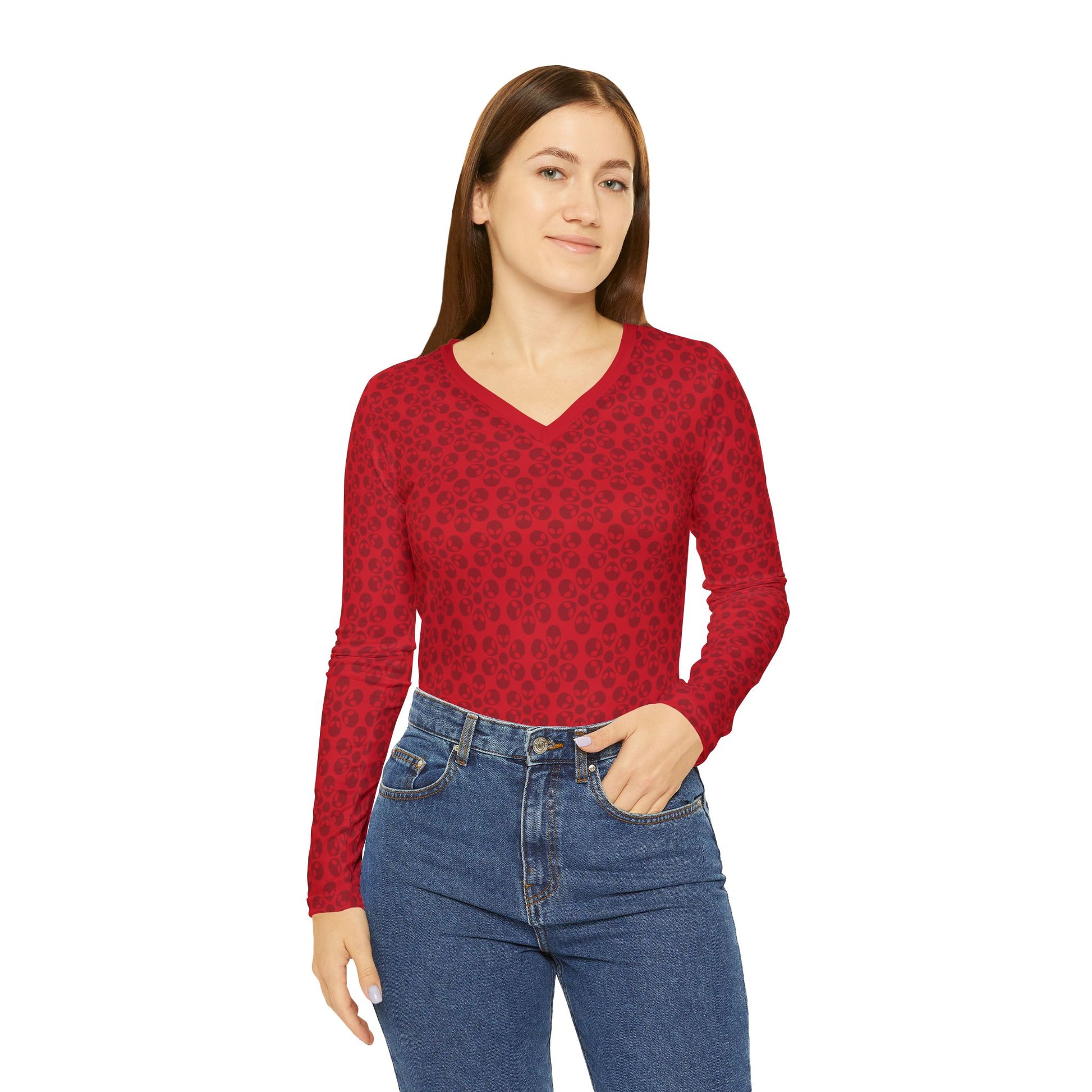 Chic Floral VNeck Shirt Stylish Womens Top Perfect for Everyday Wear Casual Gatherings Spring Outings Mother’s Day Gift Alien Flowers Dark Red