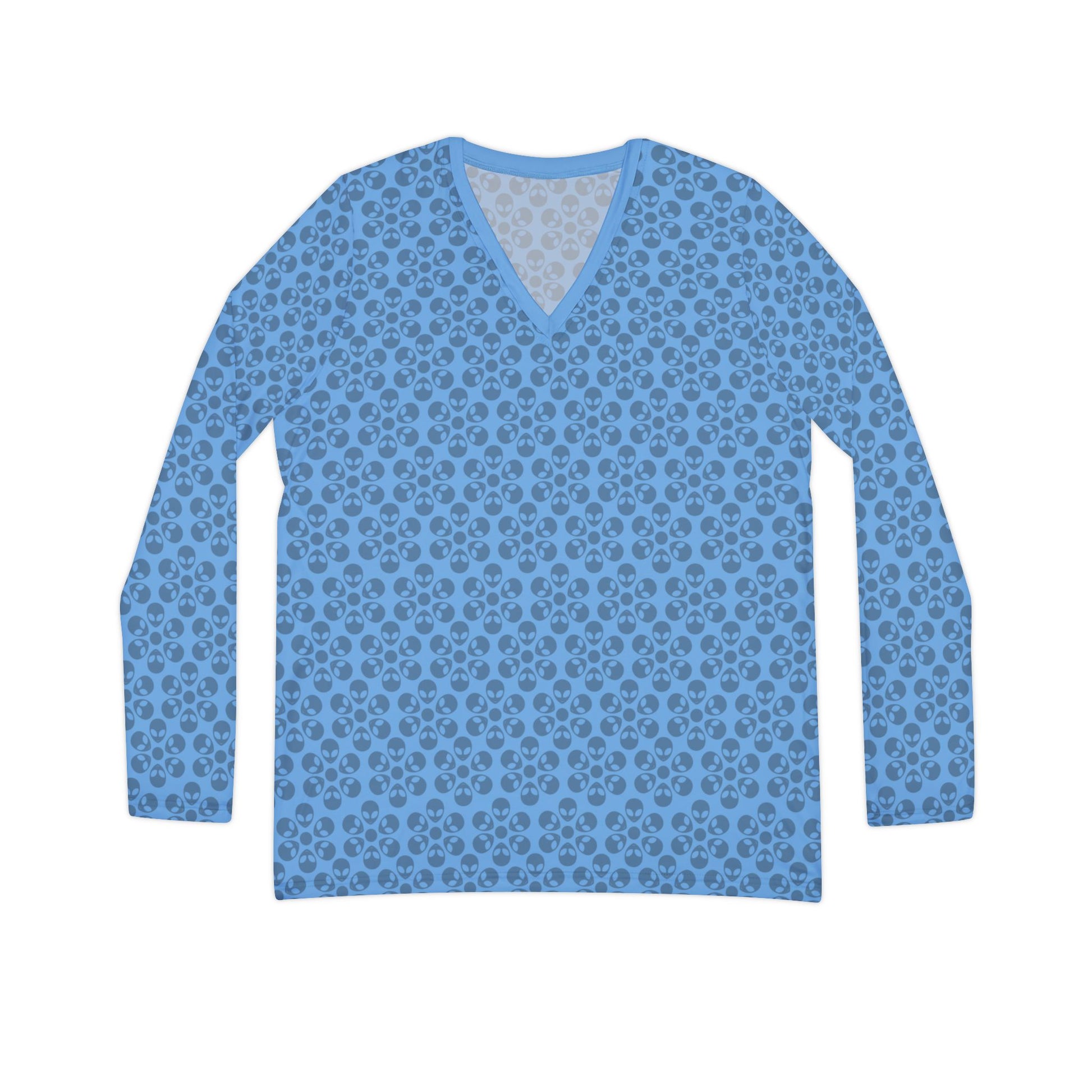 Chic Floral VNeck Shirt Stylish Womens Top Perfect for Everyday Wear Casual Gatherings Spring Outings Mother’s Day Gift Alien Flowers Light Blue
