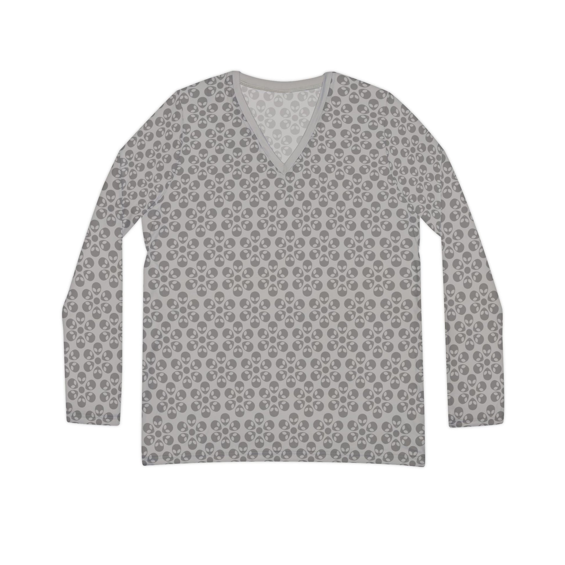 Chic Floral VNeck Shirt Stylish Womens Top Perfect for Everyday Wear Casual Gatherings Spring Outings Mother’s Day Gift Alien Flowers Light Grey