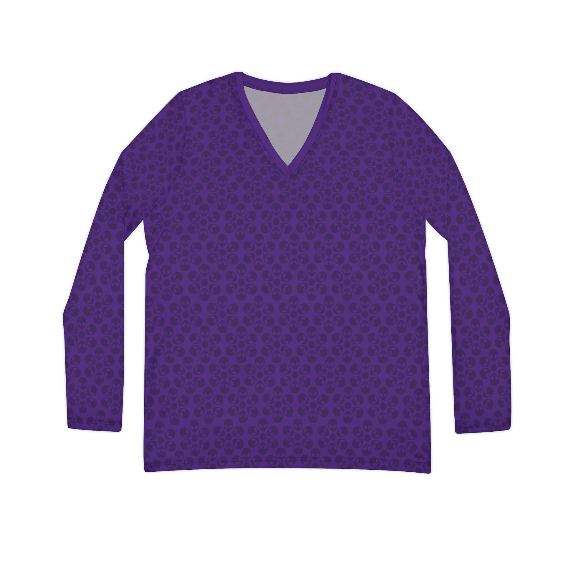 Chic Floral VNeck Shirt Stylish Womens Top Perfect for Everyday Wear Casual Gatherings Spring Outings Mother’s Day Gift Alien Flowers Purple