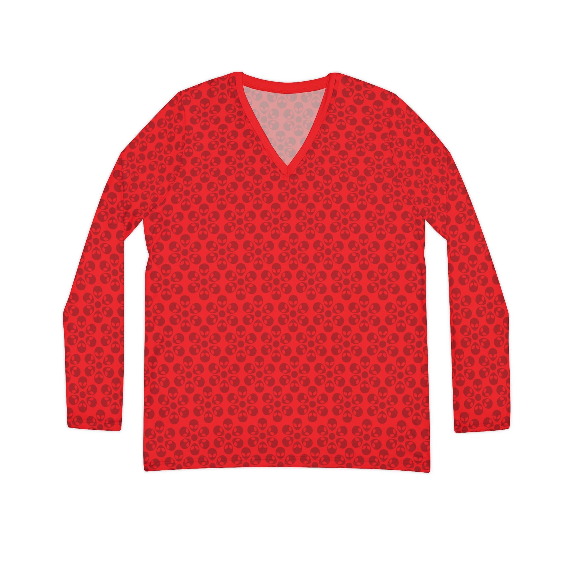 Chic Floral VNeck Shirt Stylish Womens Top Perfect for Everyday Wear Casual Gatherings Spring Outings Mother’s Day Gift Alien Flowers Red