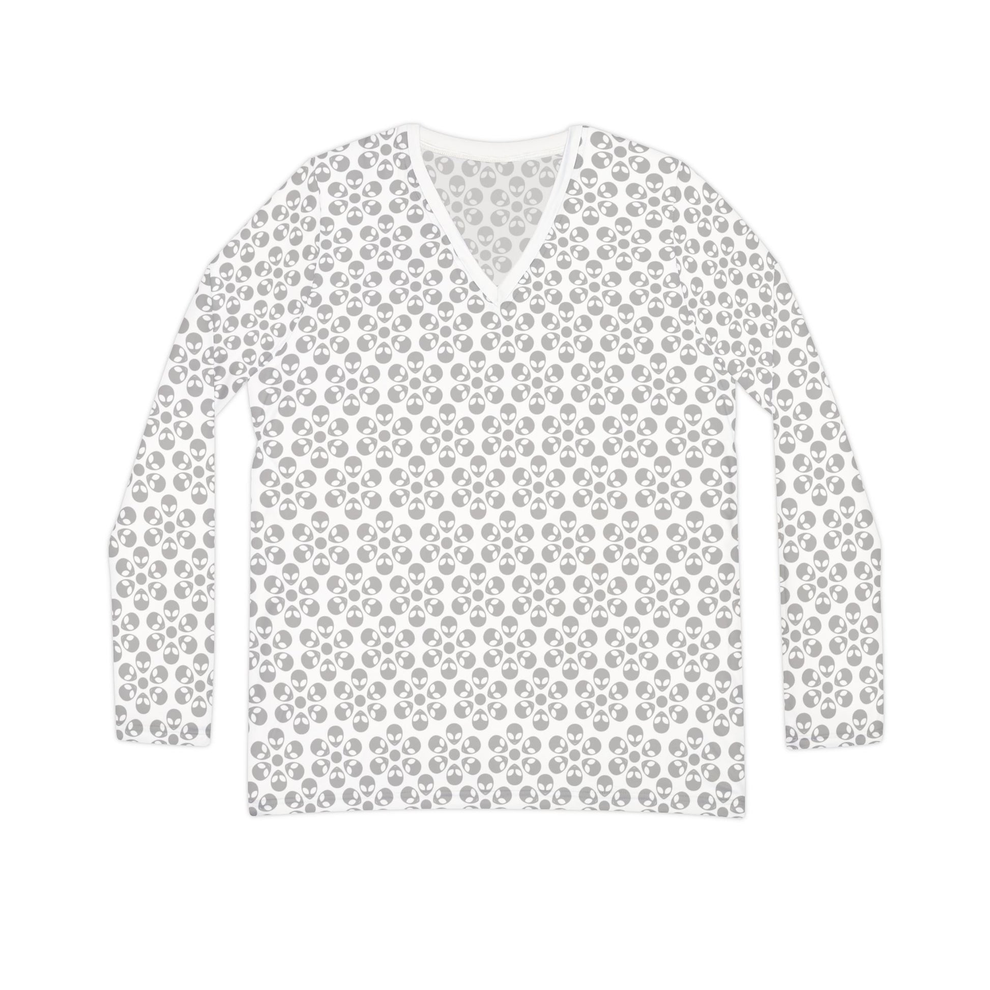 Chic Floral VNeck Shirt Stylish Womens Top Perfect for Everyday Wear Casual Gatherings Spring Outings Mother’s Day Gift Alien Flowers White