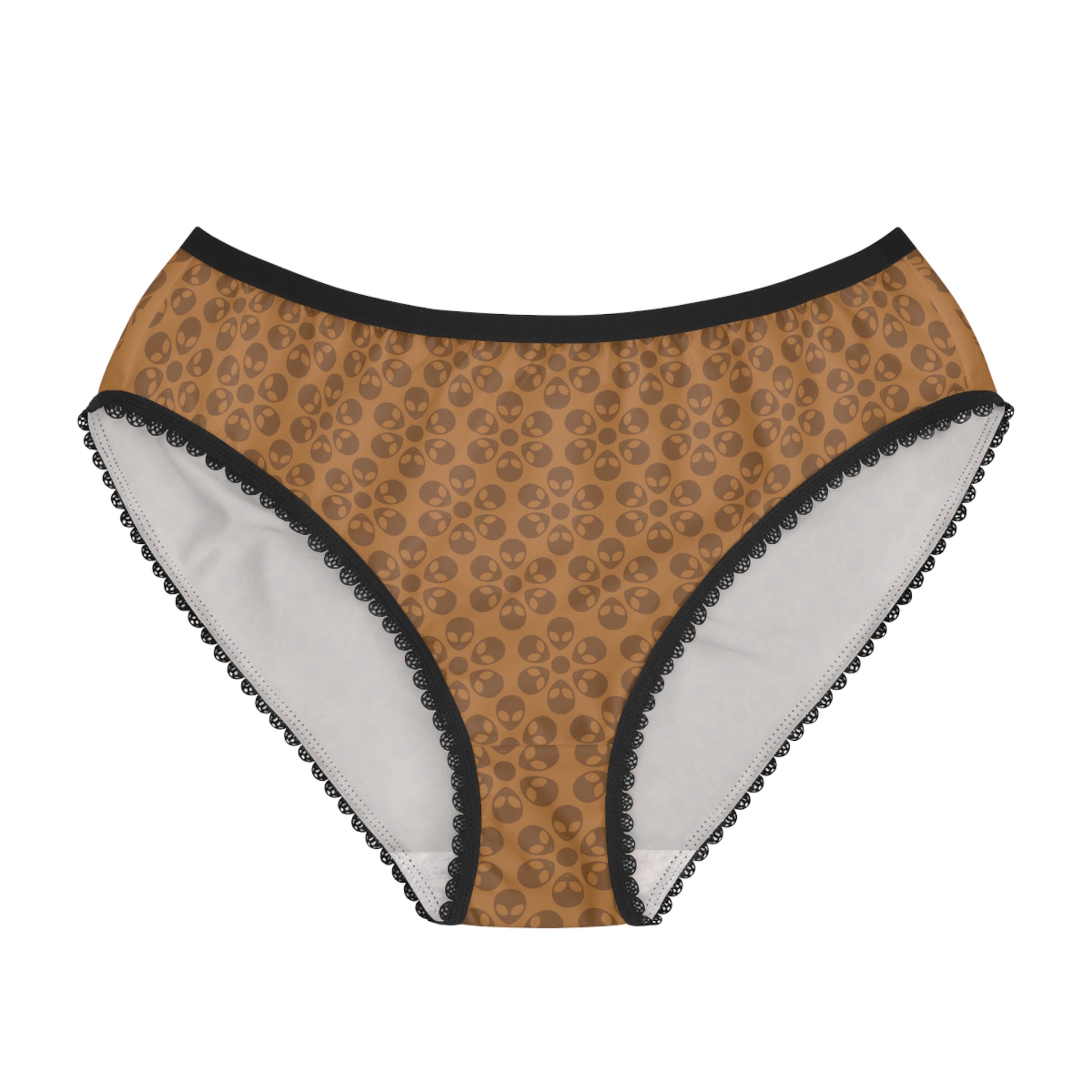 Chic Floral Womens Briefs | Comfort Everyday Wear Gifts Plus Size Stylish Lingerie Alien Flowers Light Brown