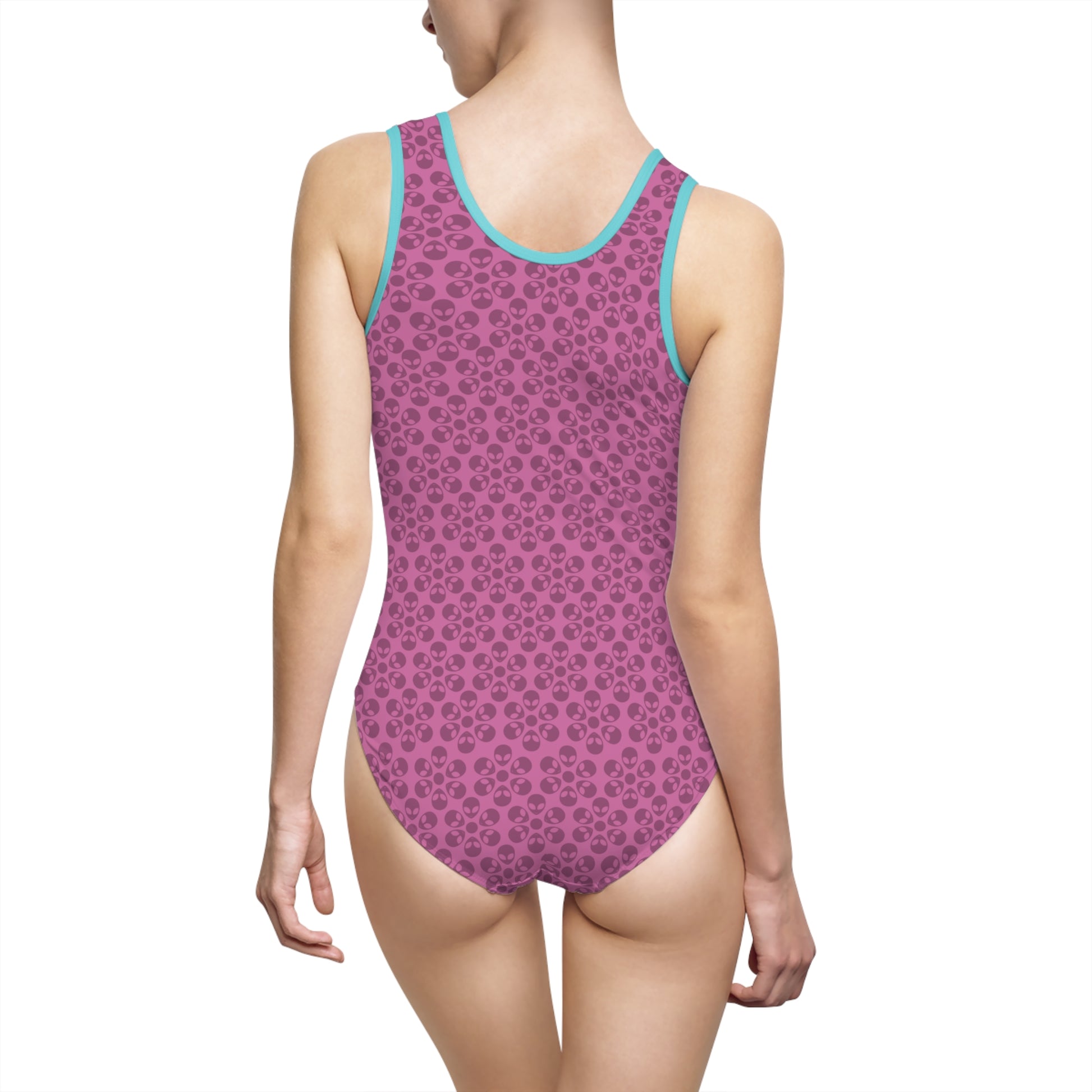 Chic Floral Womens Swimsuit Retro Bathing Suit Summer Pool Apparel Beachwear Vacation Essential Alien Flowers Light Pink