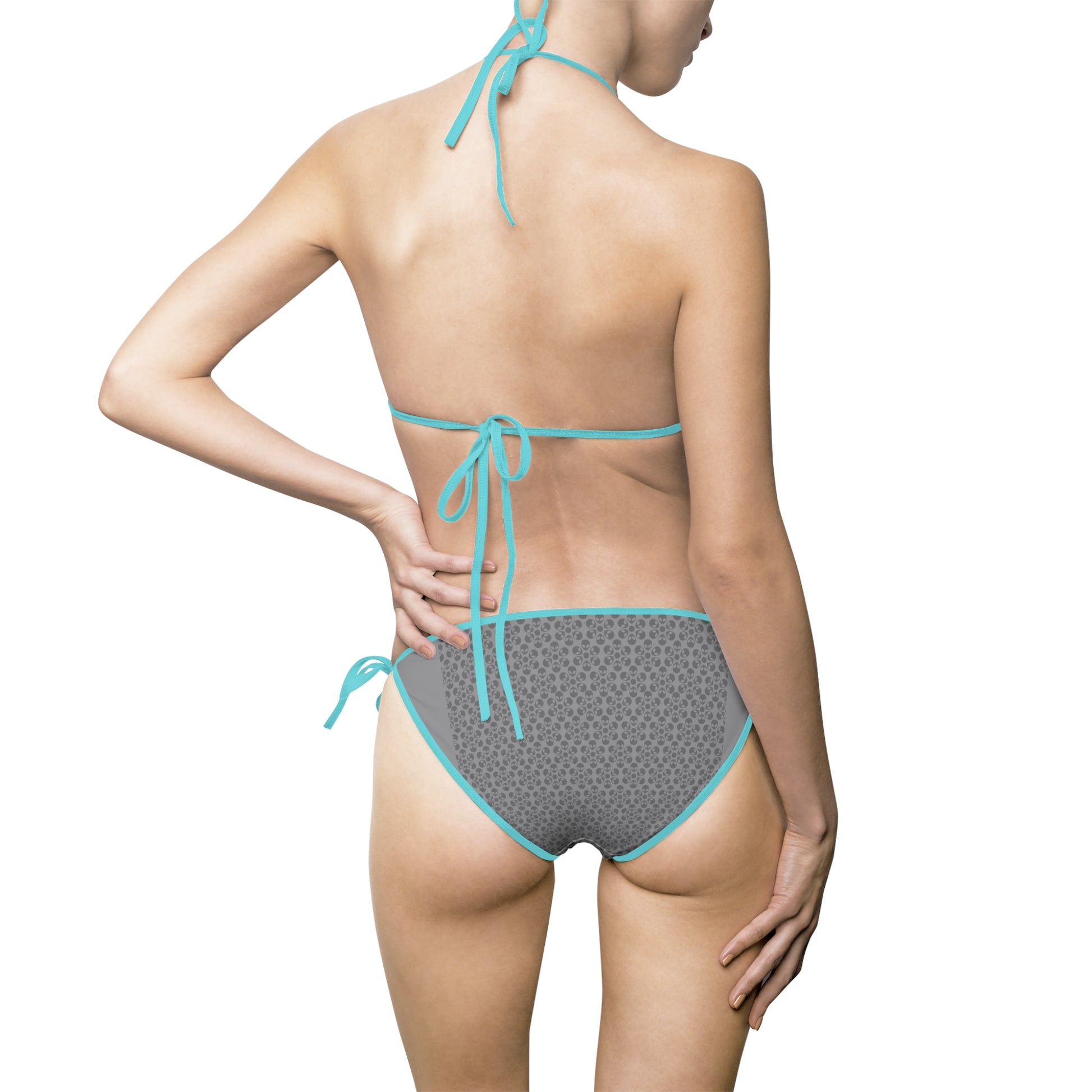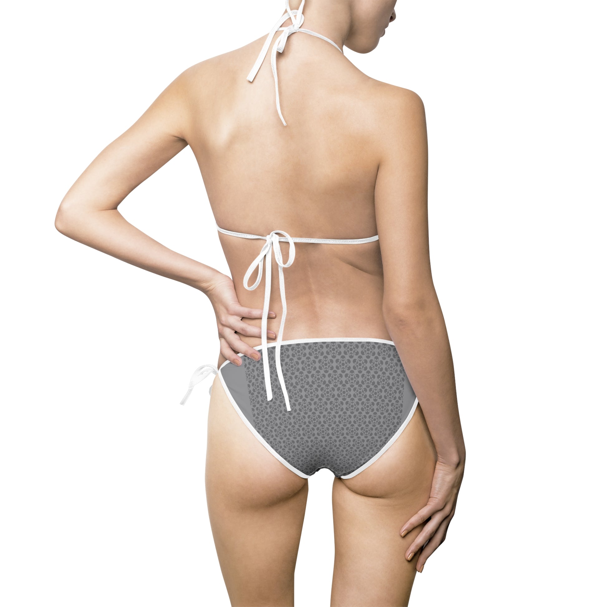 Chic Womens Bikini Swimsuit Stylish Swimwear for Beach Days Perfect for Summer Vacations Pool Parties And Resort Wear Alien Flowers Grey