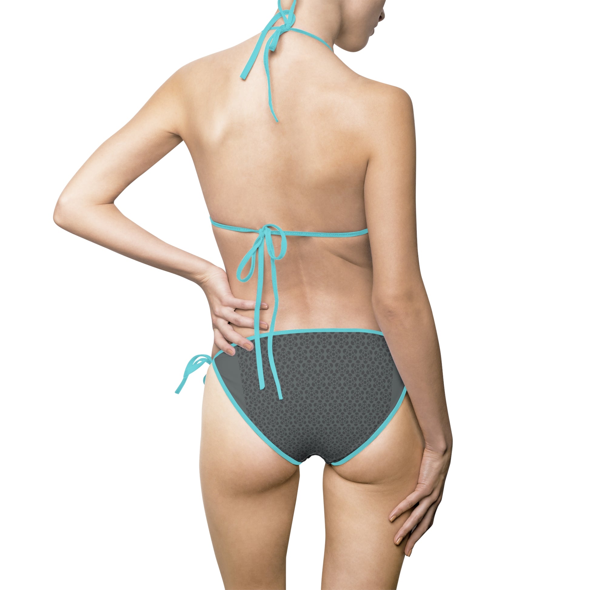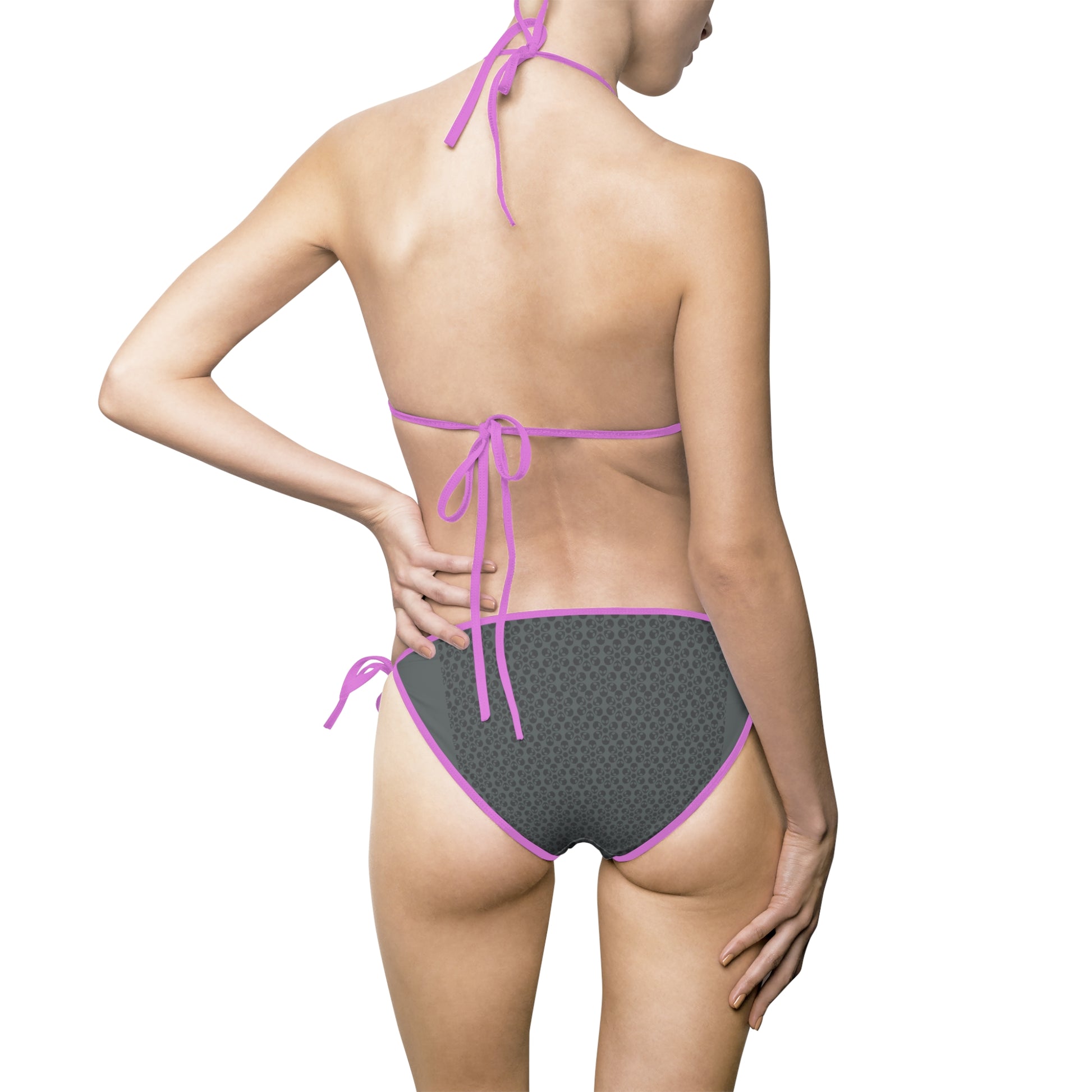 Chic Womens Bikini Swimsuit Stylish Swimwear for Beach Days Perfect for Summer Vacations Pool Parties And Resort Wear Alien Flowers Dark Grey