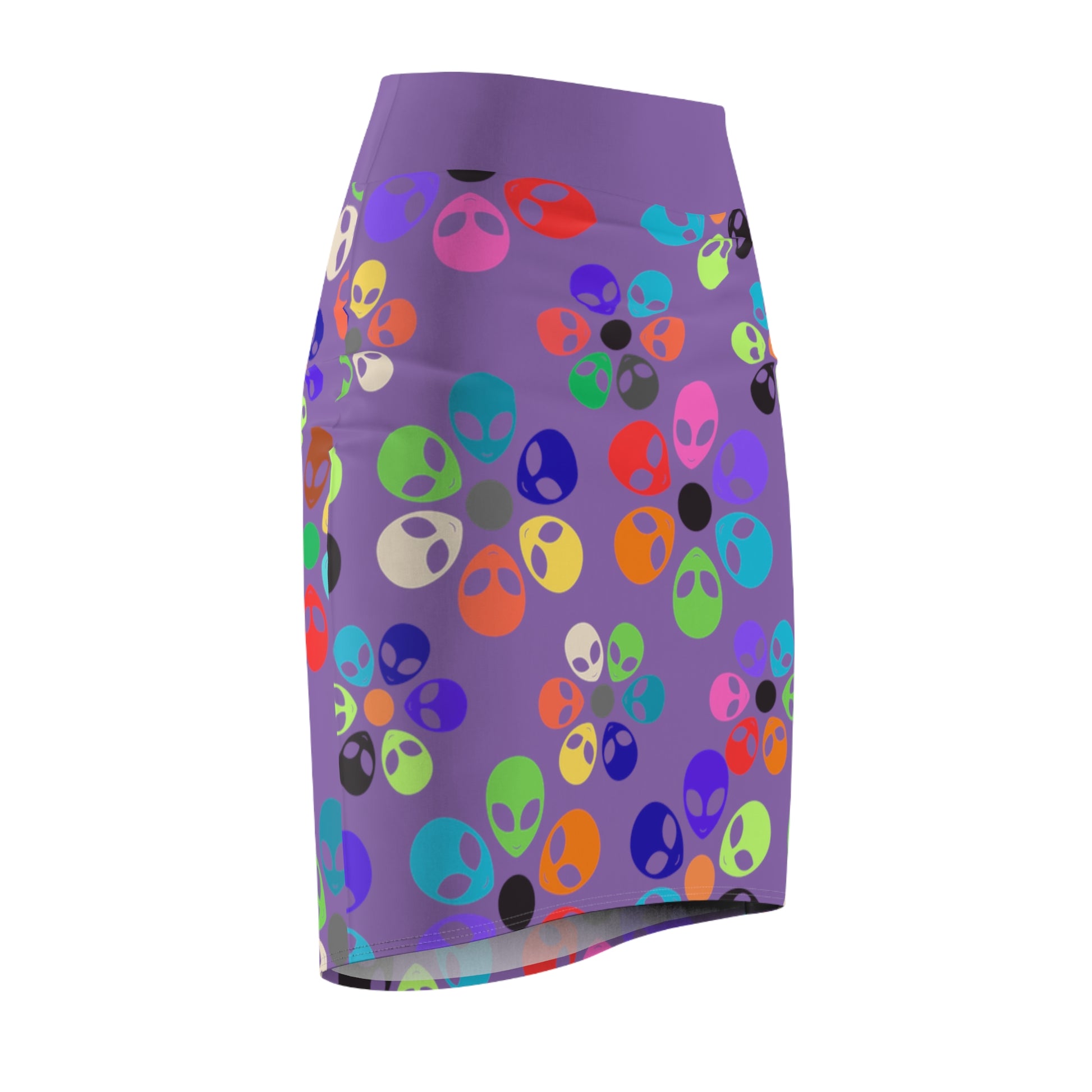 Colorful Alien Floral Womens Pencil Skirt Trendy Skirt for Spring Fashion Party Wear Festival Outfit Gift for Her Alien Rainbow Flowers Light Purple
