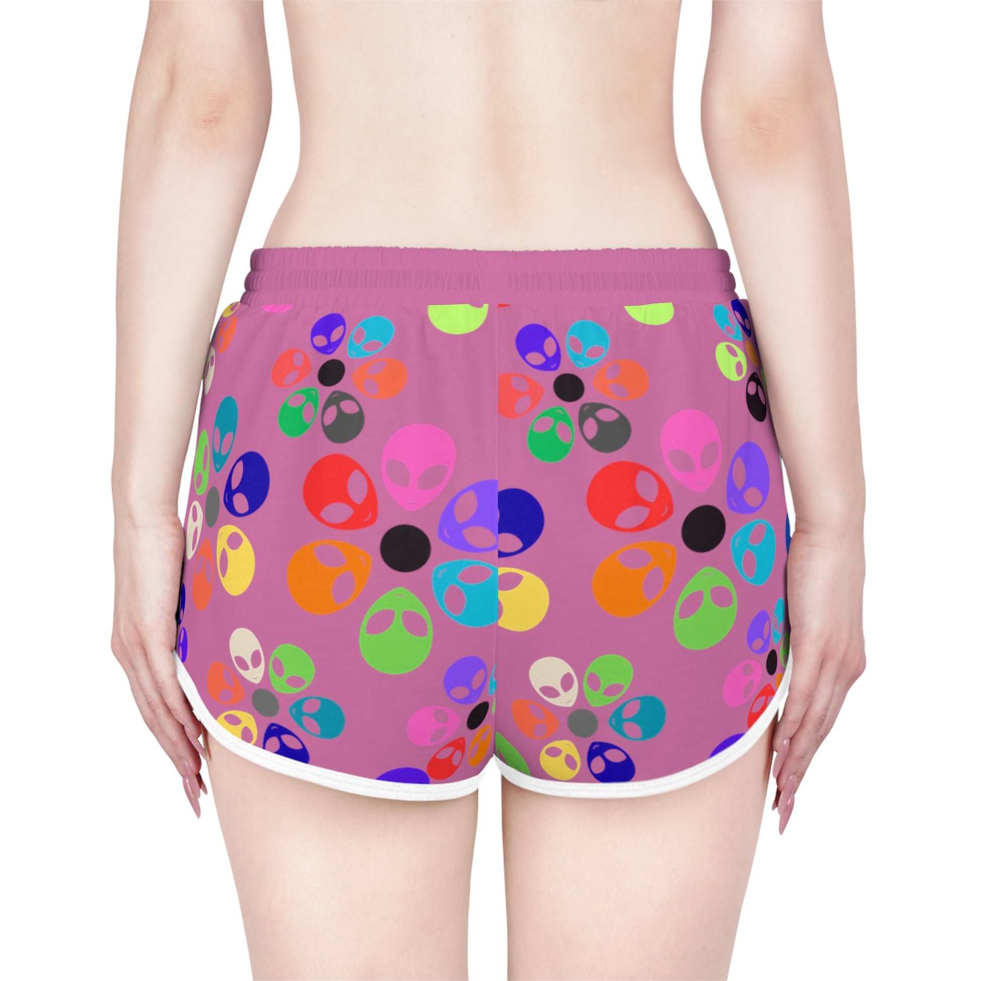Colorful Alien Flower Print Womens Relaxed Shorts Summer Loungewear Beachwear Festival Outfit Casual Comfort Alien Rainbow Flowers Light Pink