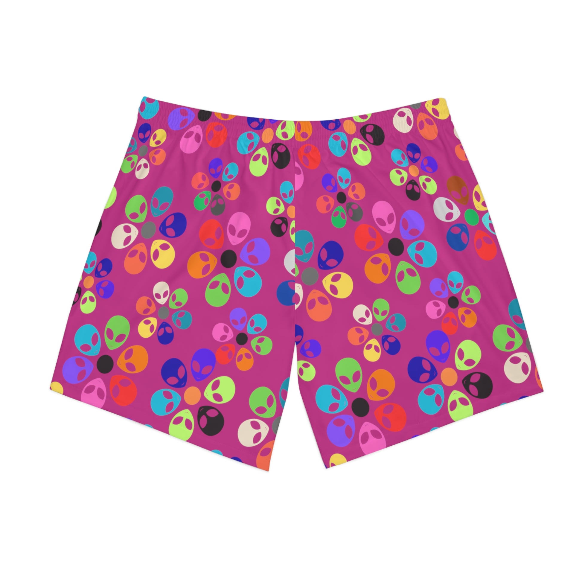 Colorful Alien Print Beach Shorts Mens Beachwear Casual Summer Shorts Vacation Swim Trunks Fun Festival Outfit Alien Rainbow Flowers Pink