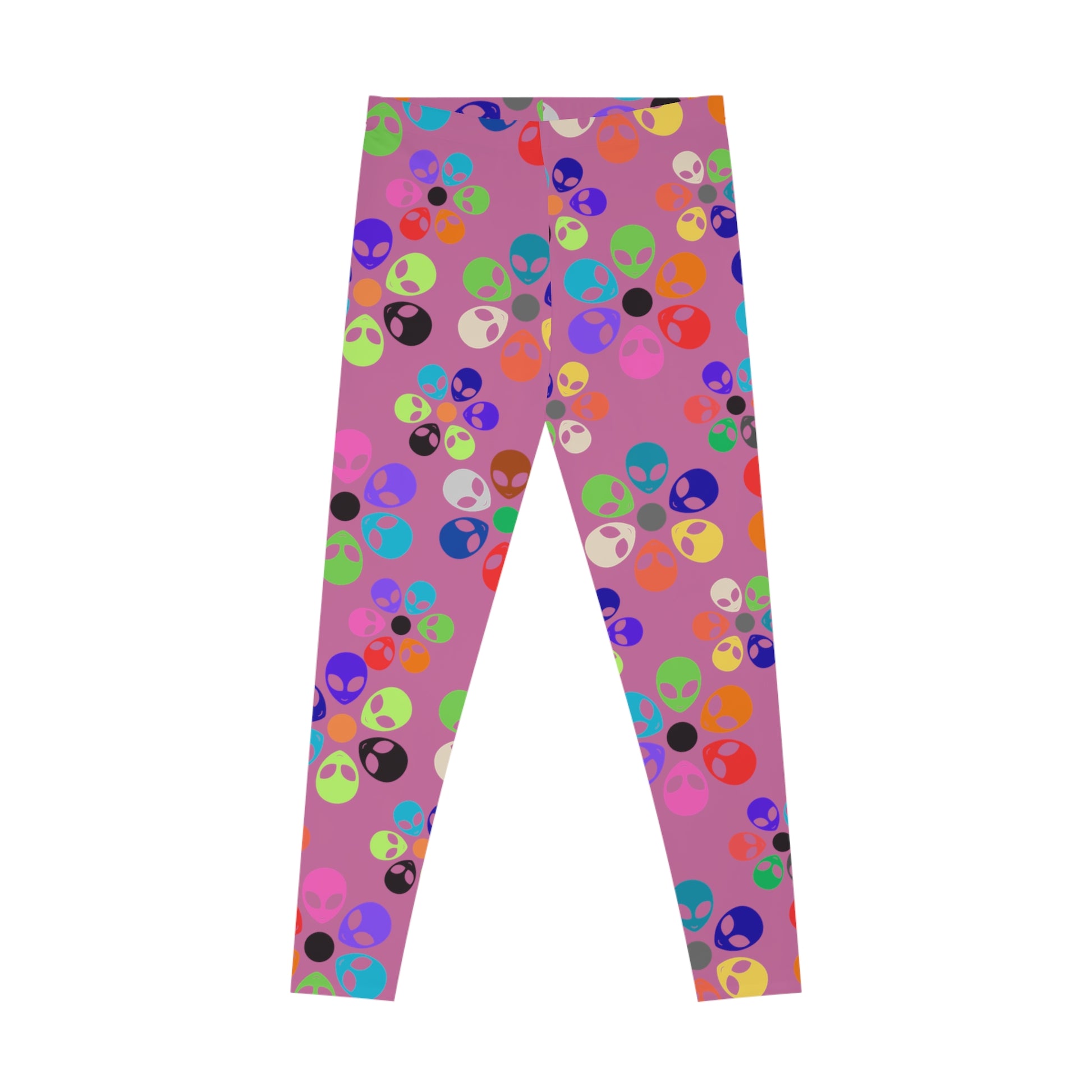 Colorful Alien Print Leggings Funky Fitness Tights Stretchy Activewear Fun Gym Leggings Quirky Casual Pants Gift for Alien Enthusiasts Alien Rainbow Flowers Light Pink