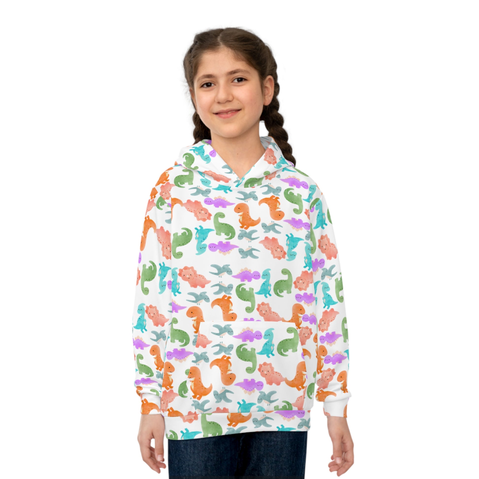 Colorful Dino Childrens Hoodie | Cozy Kidswear Beachwear Summer Adventure Birthday Gift Cute Animal Apparel Rainbow Dinos Crusta