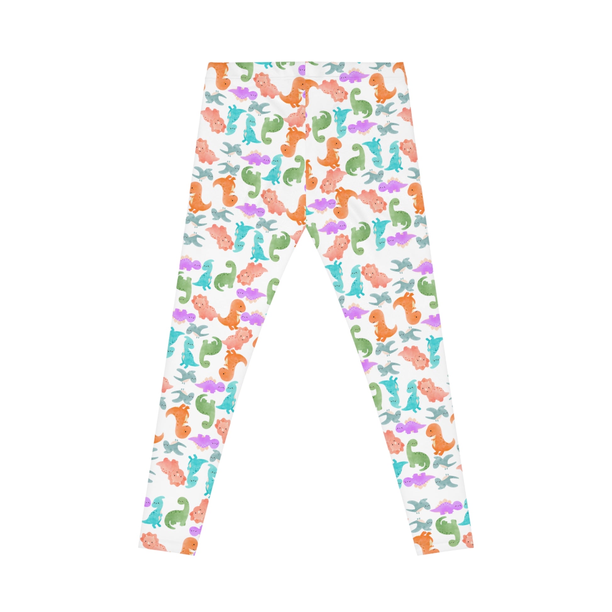 Colorful Dinosaur Print Leggings Fun Everyday Activewear Yoga Pants Fitness Apparel Gift for Kids Playful Fashion Rainbow Dinos White