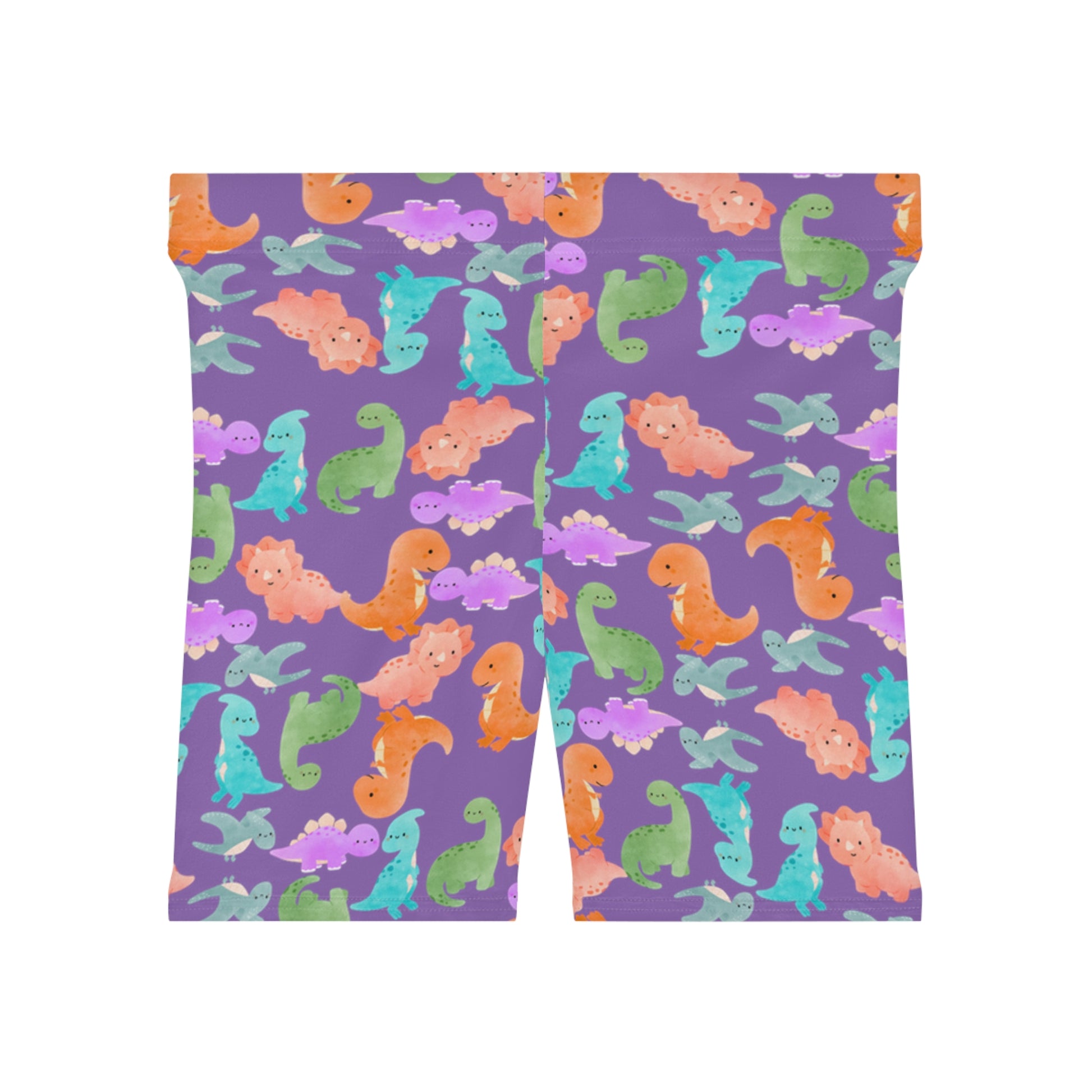 Colorful Dinosaur Womens Biker Shorts AOP Perfect for Casual Wear workout Summer Birthdays Playdates Unique Gift Rainbow Dinos Light Purple