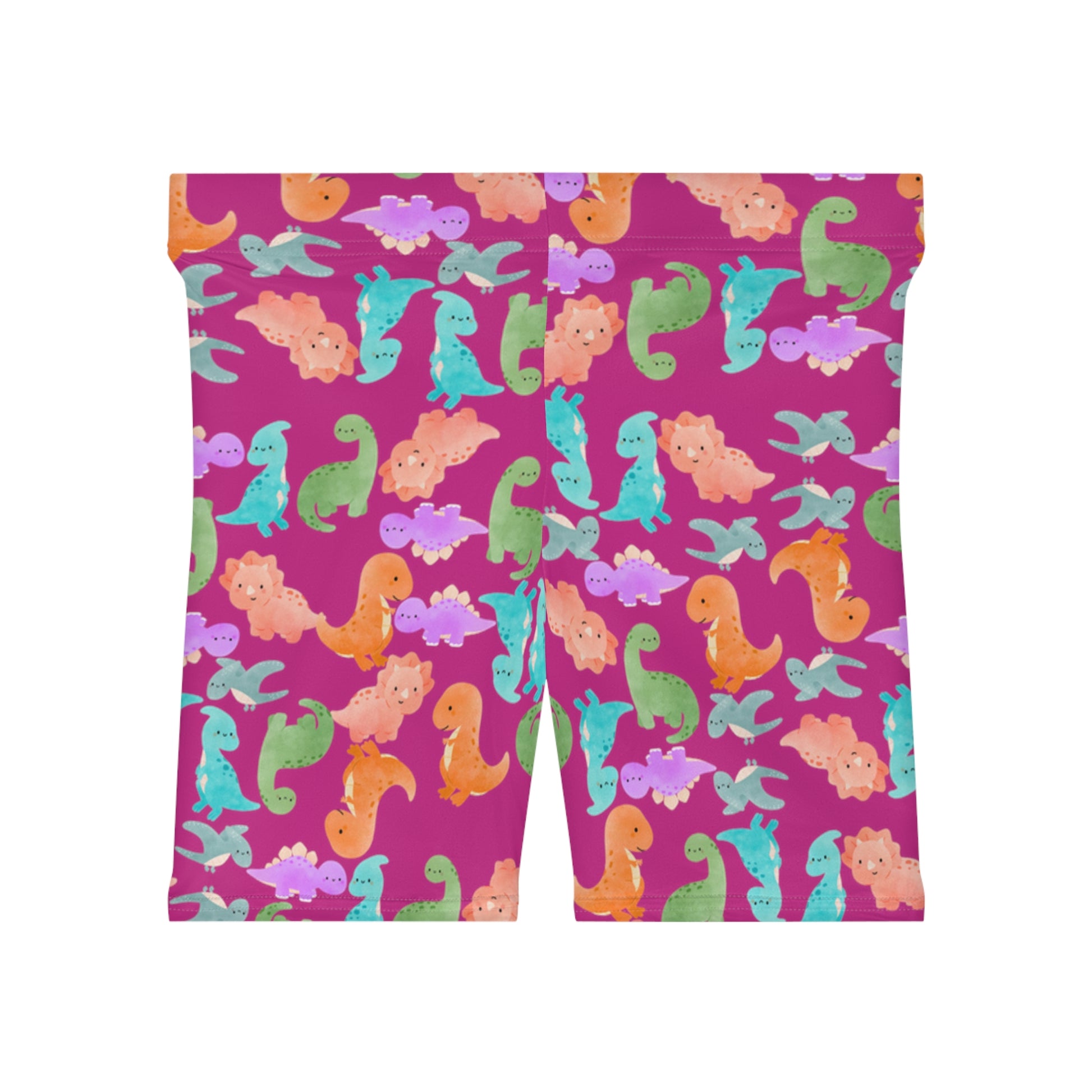 Colorful Dinosaur Womens Biker Shorts AOP Perfect for Casual Wear workout Summer Birthdays Playdates Unique Gift Rainbow Dinos Pink
