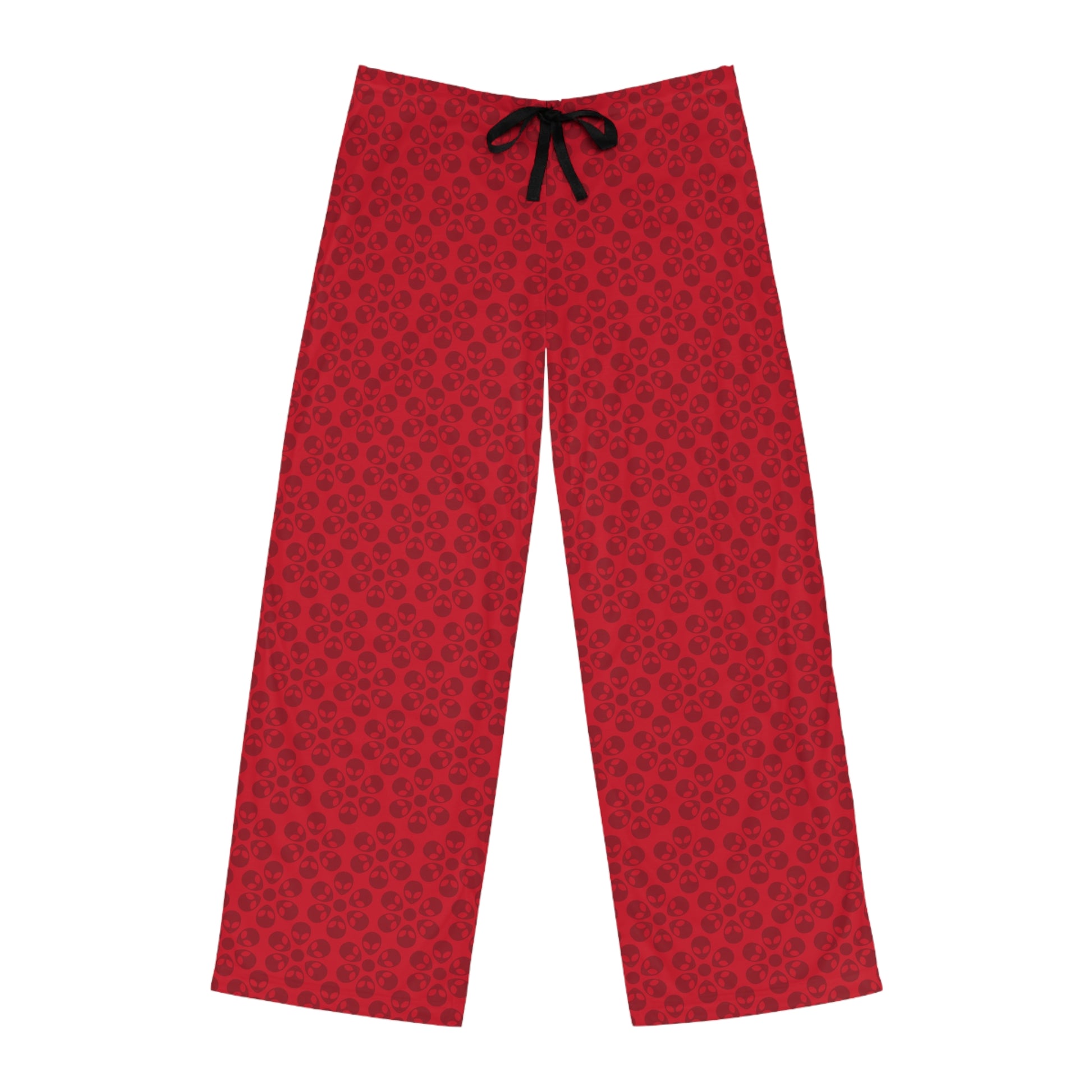 Cozy Mens Pajama Pants Stylish Floral Sleepwear Ideal for Relaxing Gifts for Him Home Lounge Wear Unique Patterned PJs Alien Flowers Dark Red