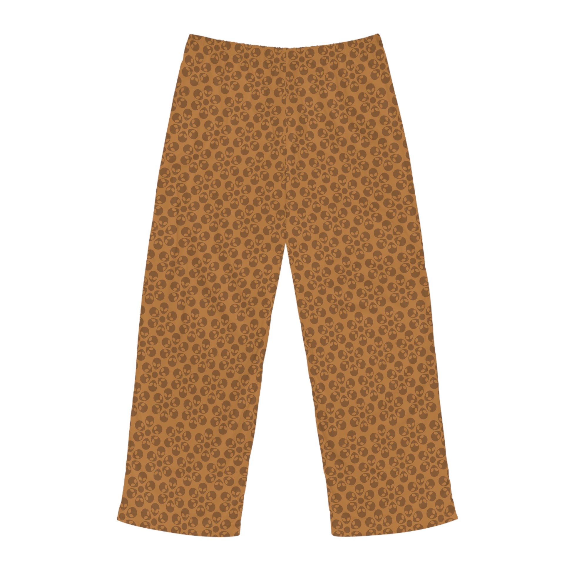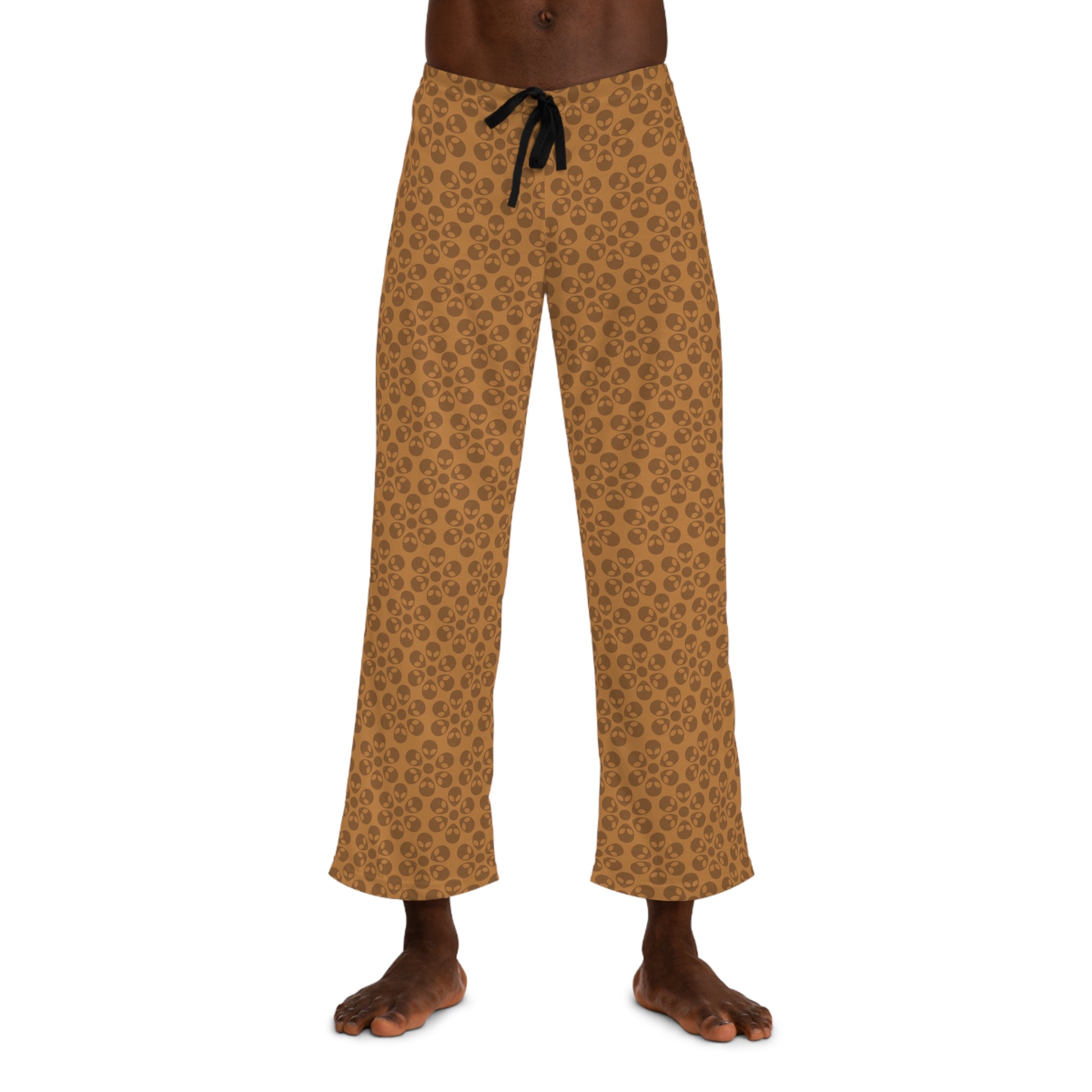 Cozy Mens Pajama Pants Stylish Floral Sleepwear Ideal for Relaxing Gifts for Him Home Lounge Wear Unique Patterned PJs Alien Flowers Light Brown