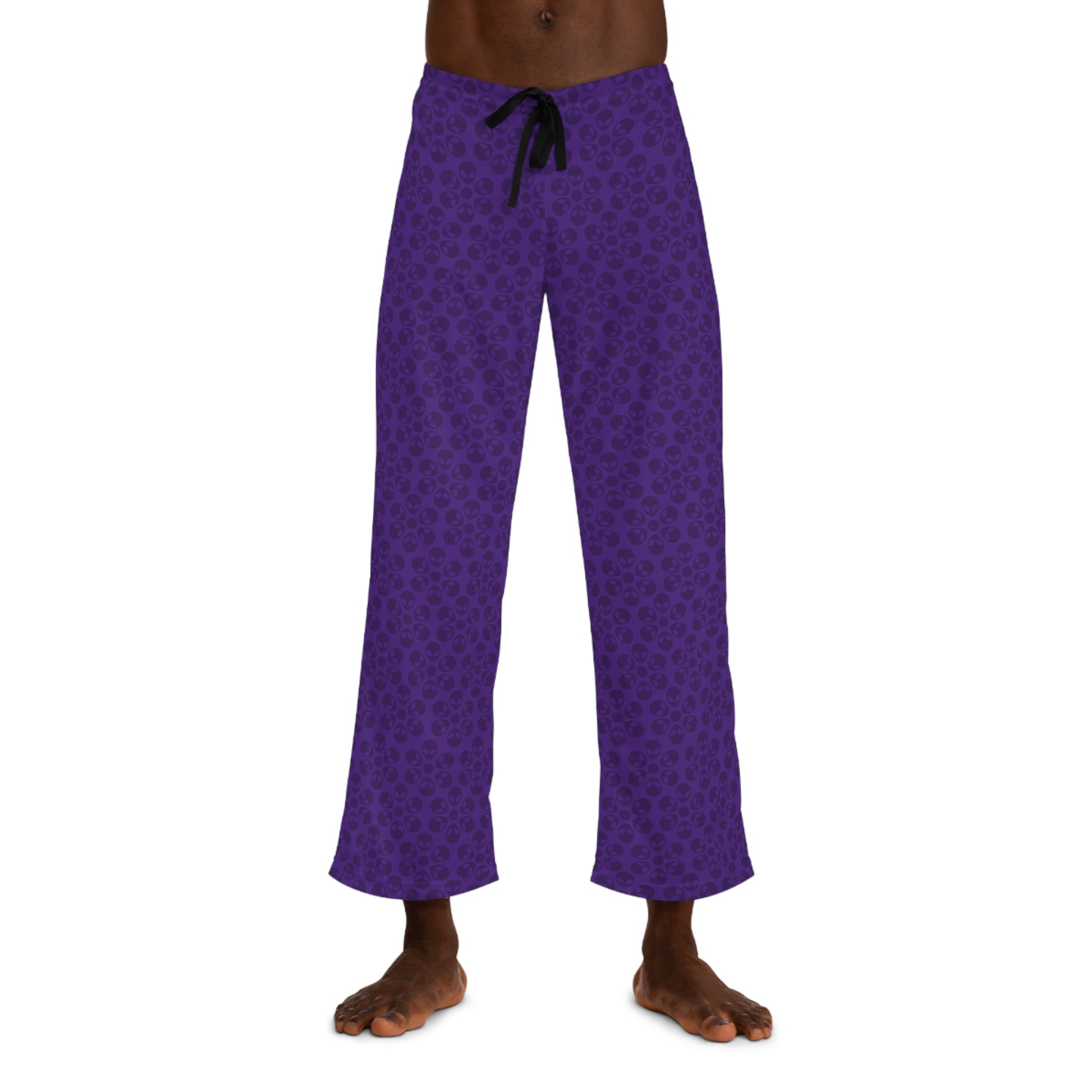 Cozy Mens Pajama Pants Stylish Floral Sleepwear Ideal for Relaxing Gifts for Him Home Lounge Wear Unique Patterned PJs Alien Flowers Purple