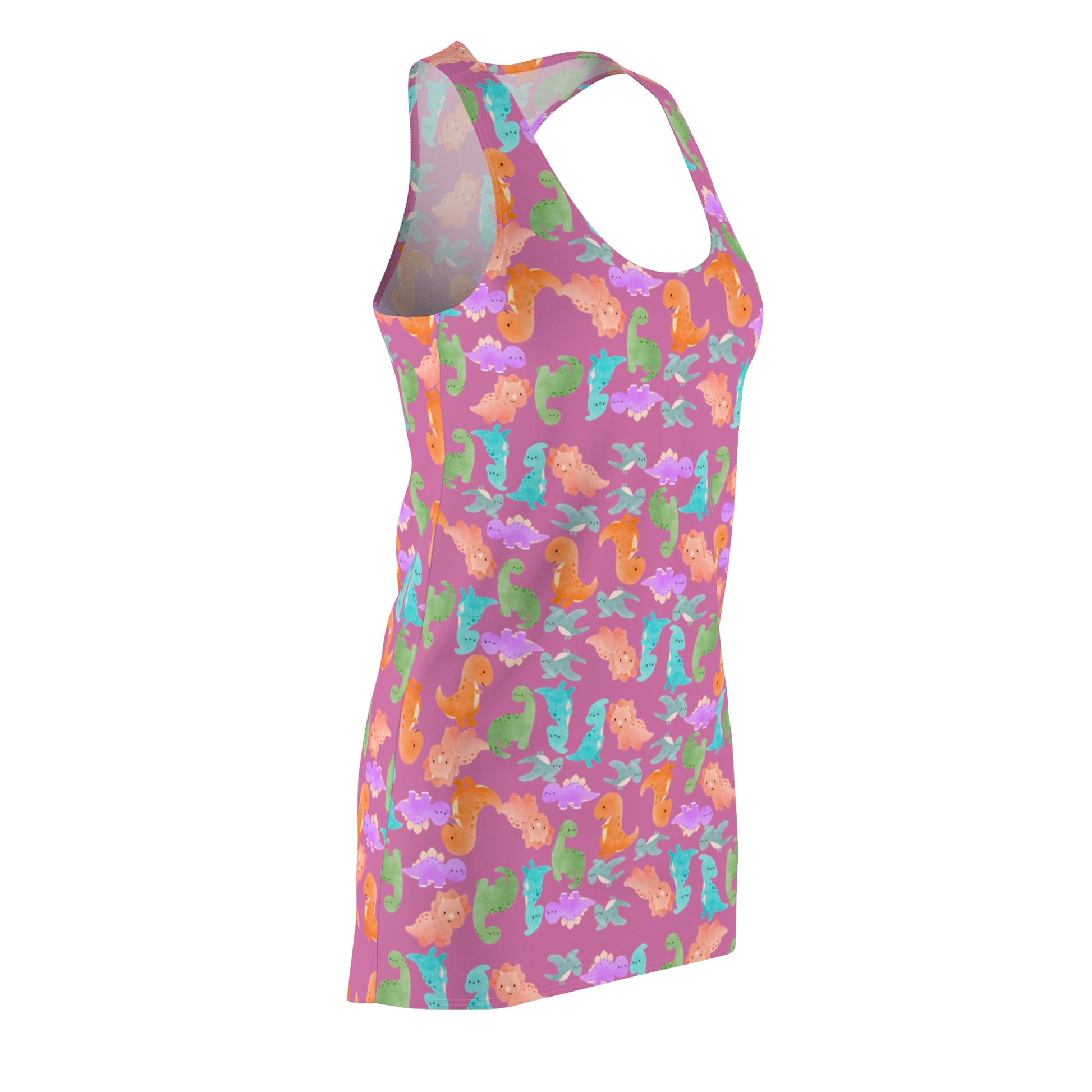 Dino Pattern Racerback Dress Summer Dress Beach Wear Vacation Outfit Casual Dress Gift for Her Rainbow Dinos Light Pink