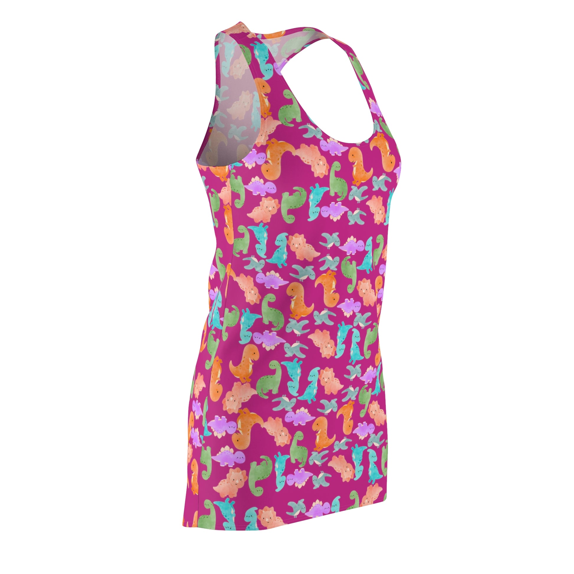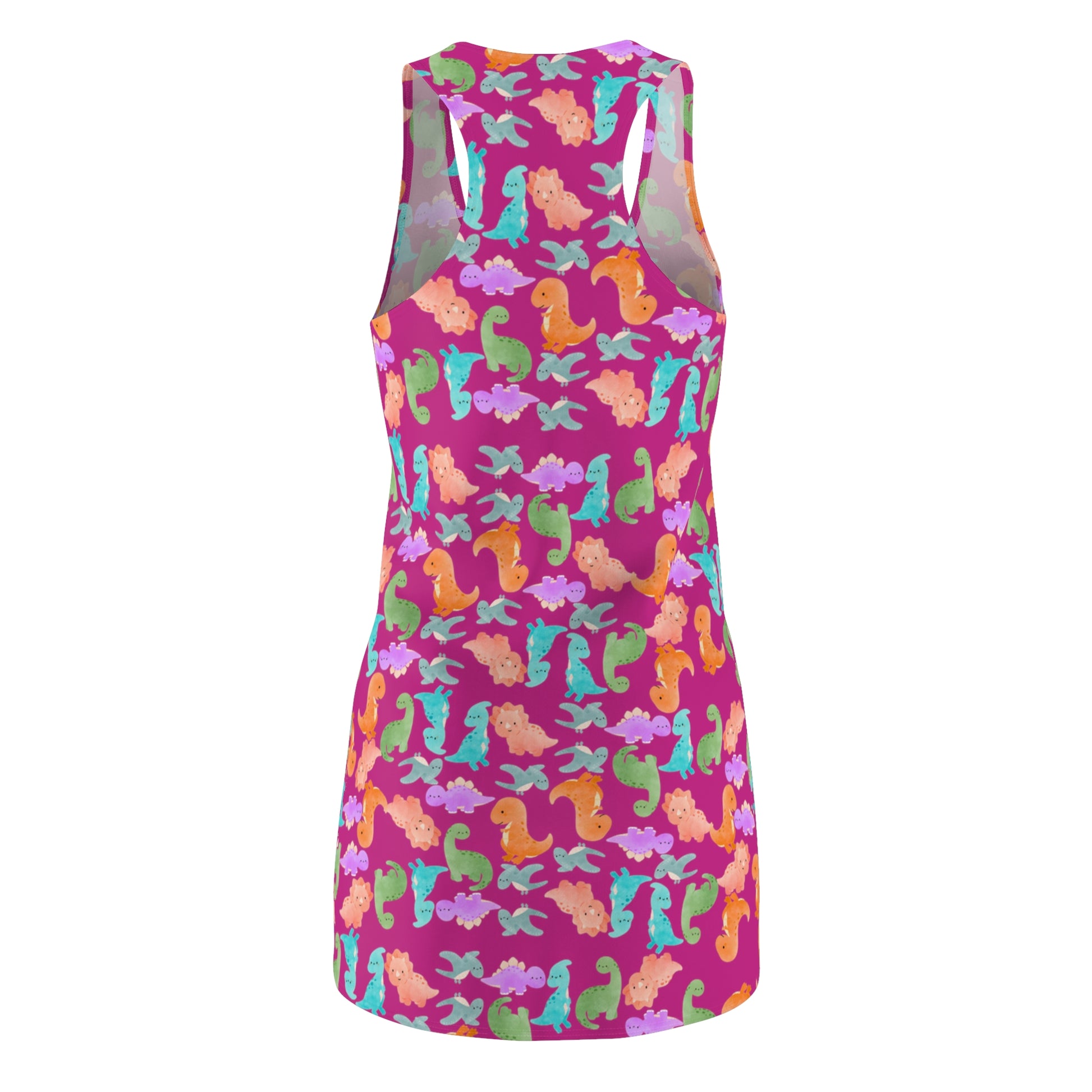 Dino Pattern Racerback Dress Summer Dress Beach Wear Vacation Outfit Casual Dress Gift for Her Rainbow Dinos Pink