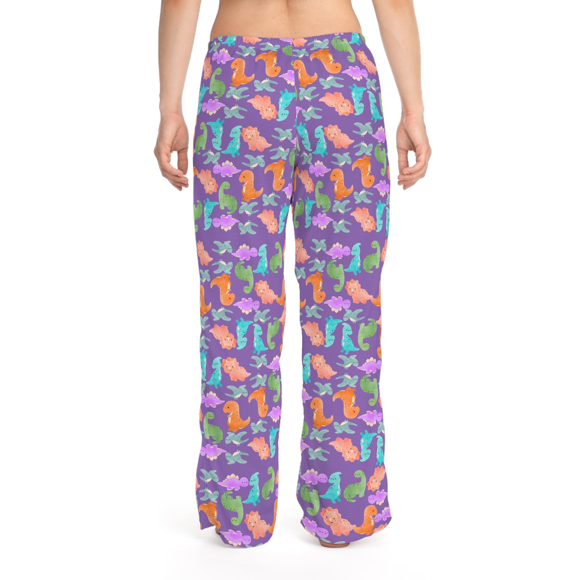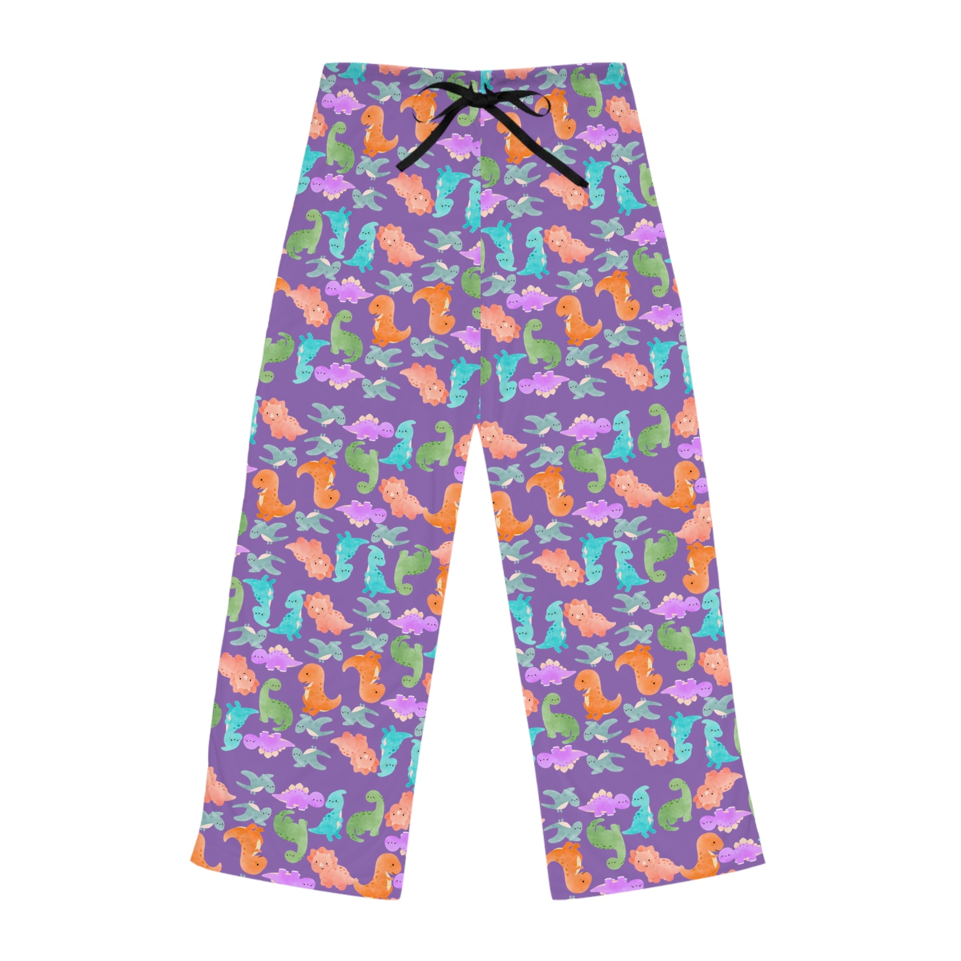 Dino Pattern Womens Pajama Pants Cozy Sleepwear Fun Lounge Pants Perfect Gift for Sleepovers Summer Vibes Beach Lovers Rainbow Dinos Light Purple