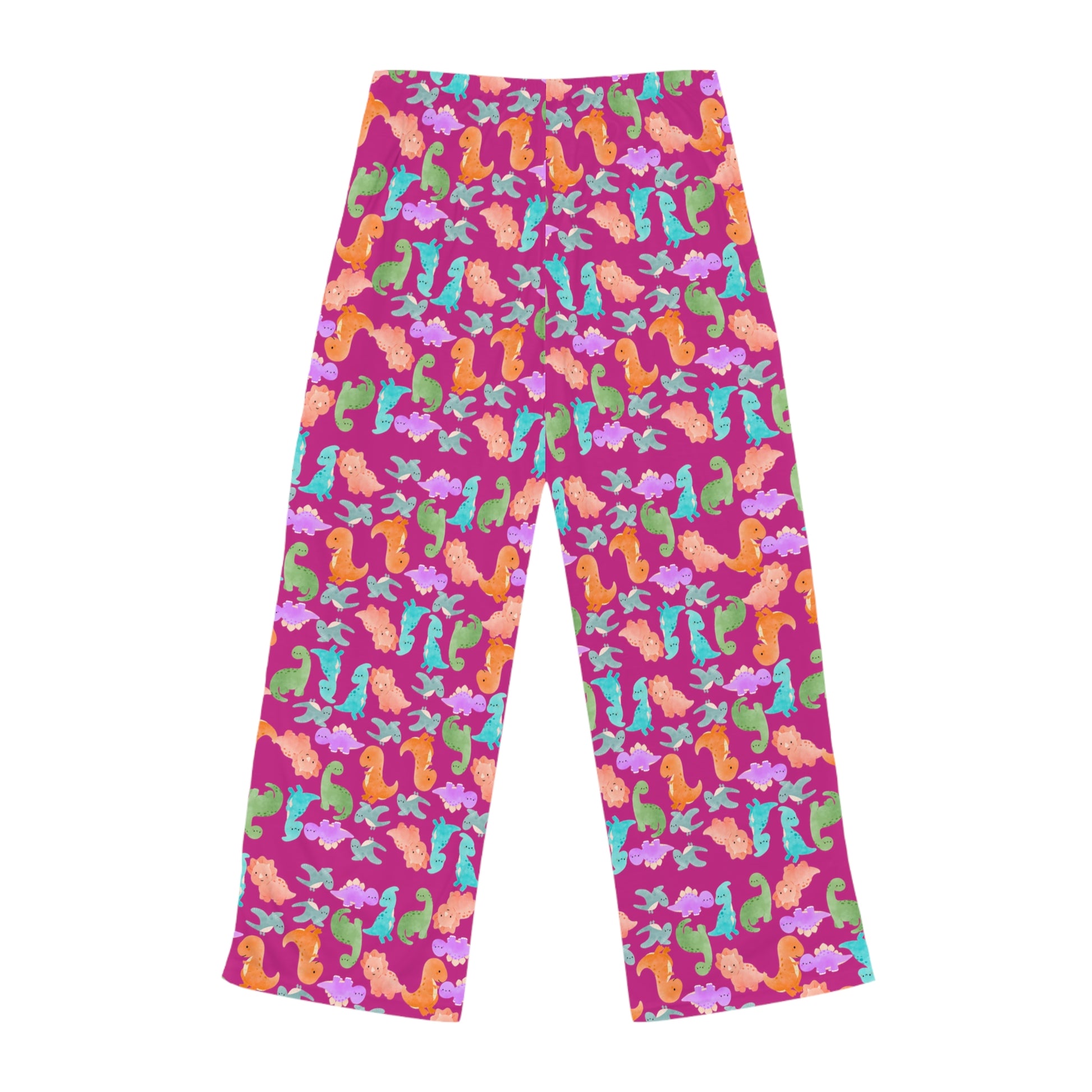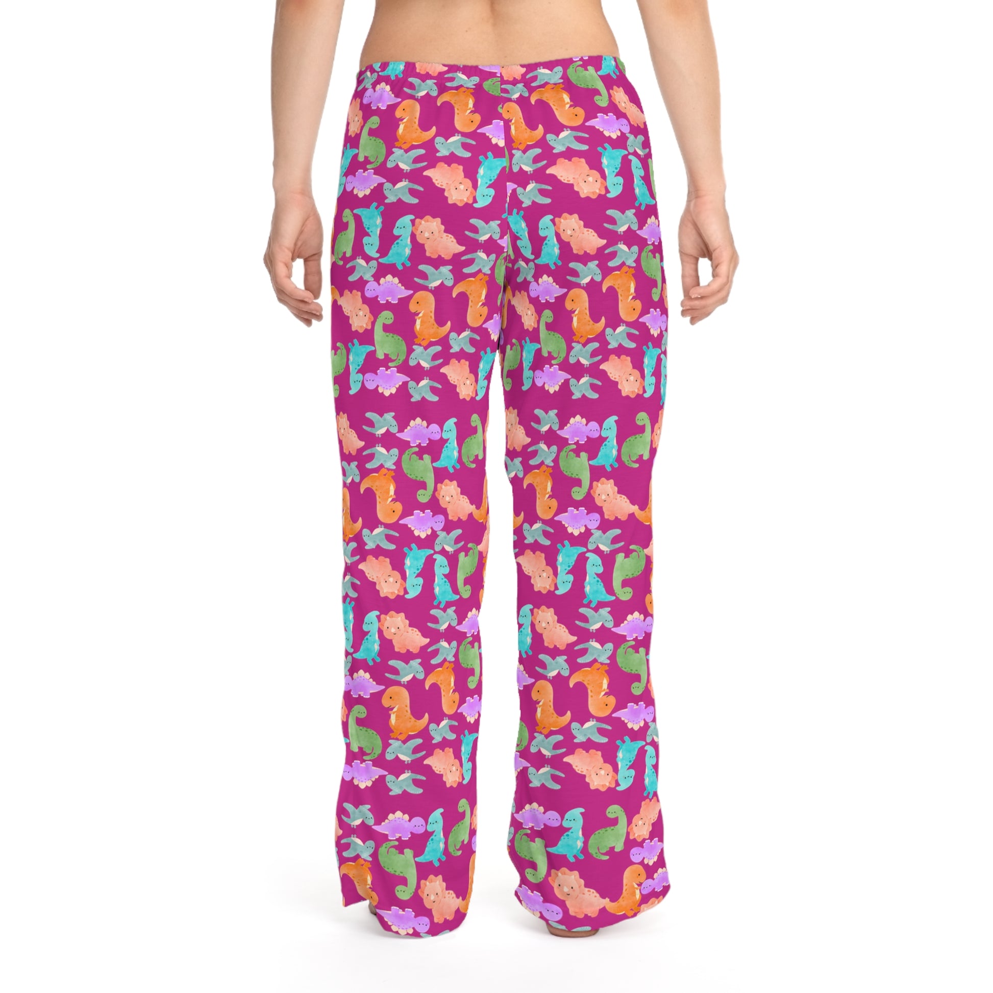 Dino Pattern Womens Pajama Pants Cozy Sleepwear Fun Lounge Pants Perfect Gift for Sleepovers Summer Vibes Beach Lovers Rainbow Dinos Pink
