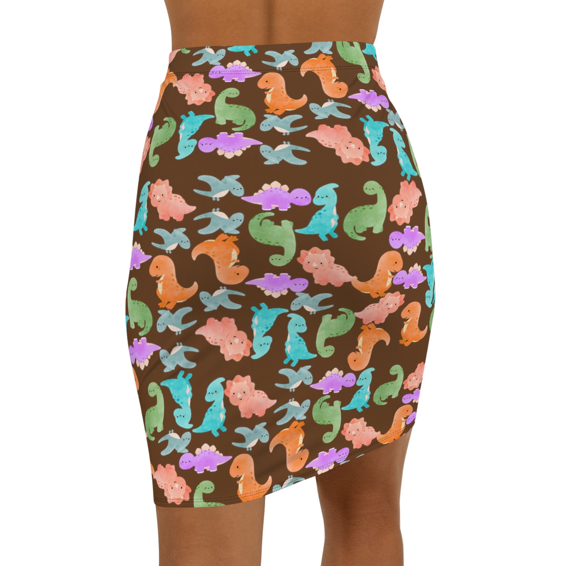 Dinosaur Print MidWaist Pencil Skirt for Fun and Playful Style Womens Skirt Cute Skirt Fashionable Skirt Casual Skirt Gift Idea Rainbow Dinos Brown