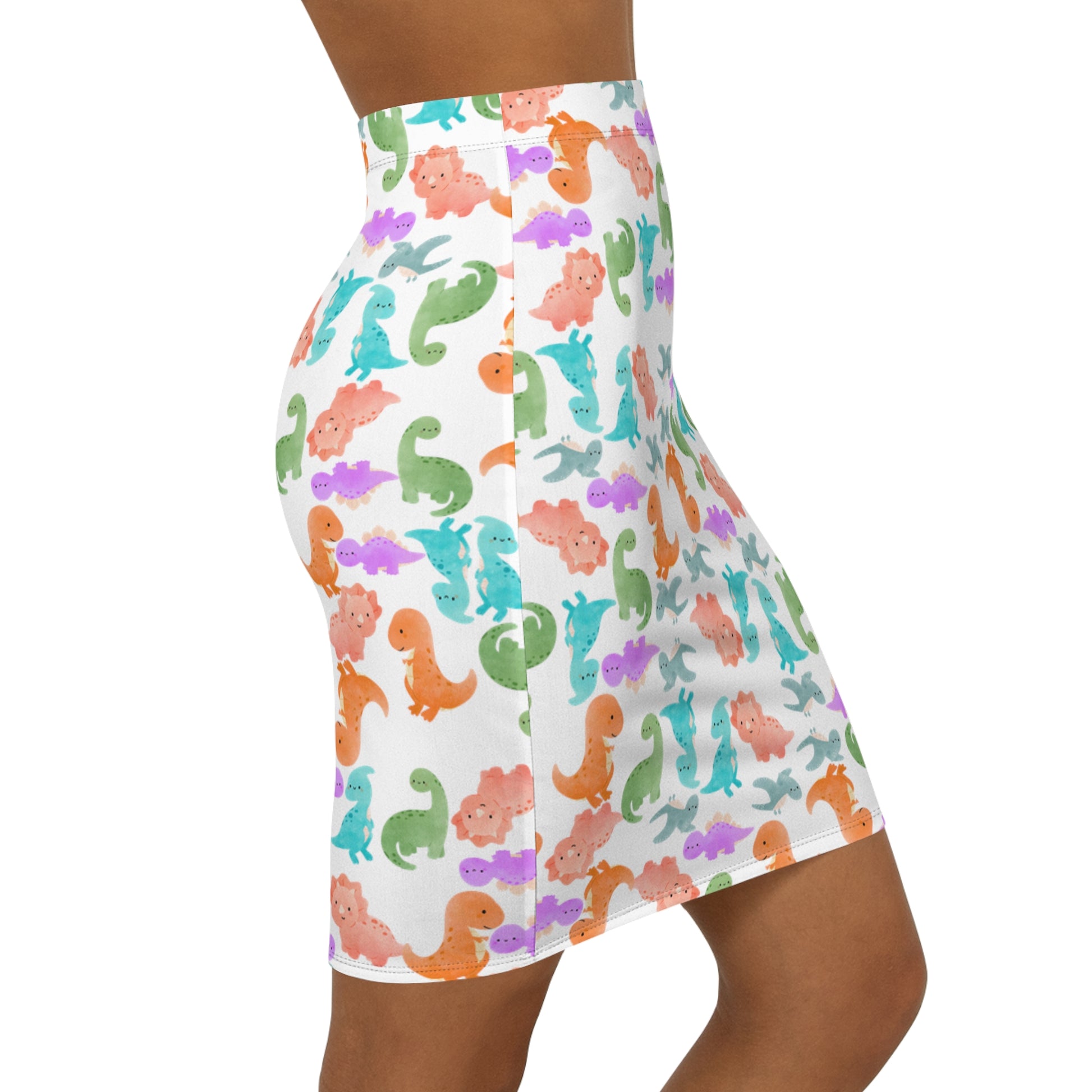 Dinosaur Print MidWaist Pencil Skirt for Fun and Playful Style Womens Skirt Cute Skirt Fashionable Skirt Casual Skirt Gift Idea Rainbow Dinos Grey